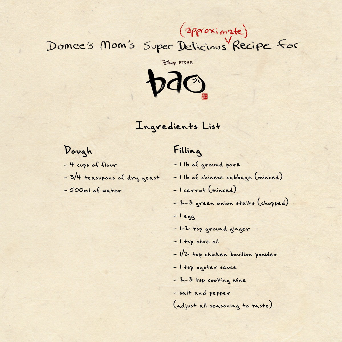 Did Pixar's heartwarming and magnificent animated short Bao have you craving the love of your absent child, or better yet, dumplings? If it was the latter, then you're in luck because Pixar has released the Bao recipe that director Domee Shi learned from her own mother. Unfortunately, this recipe probably won't solve any feelings of abject loneliness surrounding a child who has left the nest. But hey, at least you'll have delicious food!