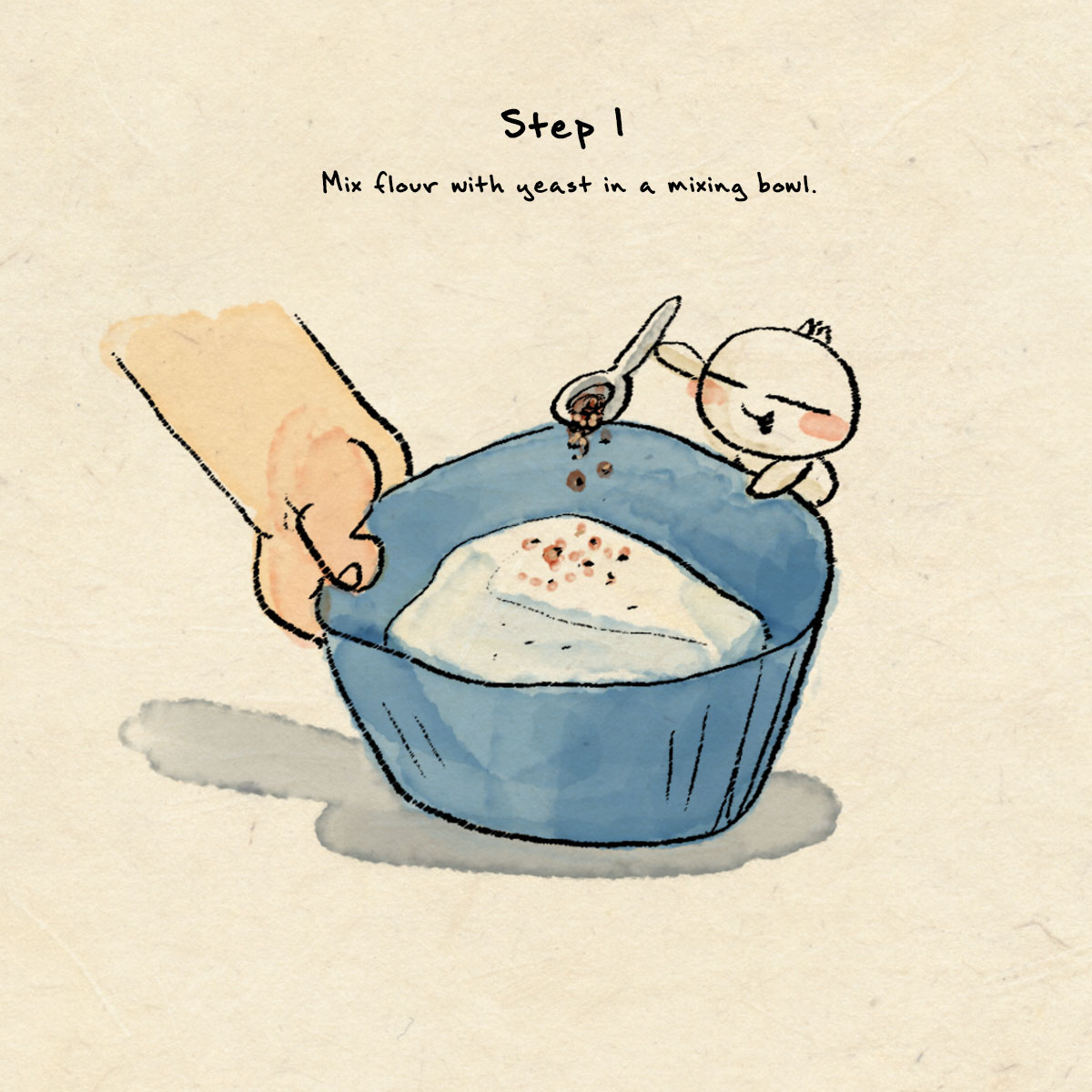 For those who are hard of sight, or don't want to get distracted by the adorable illustrations every time you cook, here are the instructions written out: