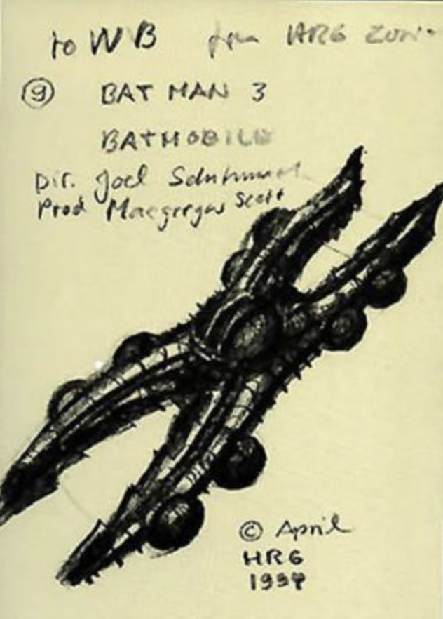 A fun piece of trivia is making the rounds again, and since we've never written about it at /Film, now's as good a time as any to share it. H.R. Giger, one of the designers of Ridley Scott's sci-fi classic Alien, was hired to create some Batmobile concept art for director Joel Schumacher's 1995 film Batman Forever – and Giger's design is just as odd as you'd expect from the man whose mind birthed the Xenomorph. Take a closer look below.
