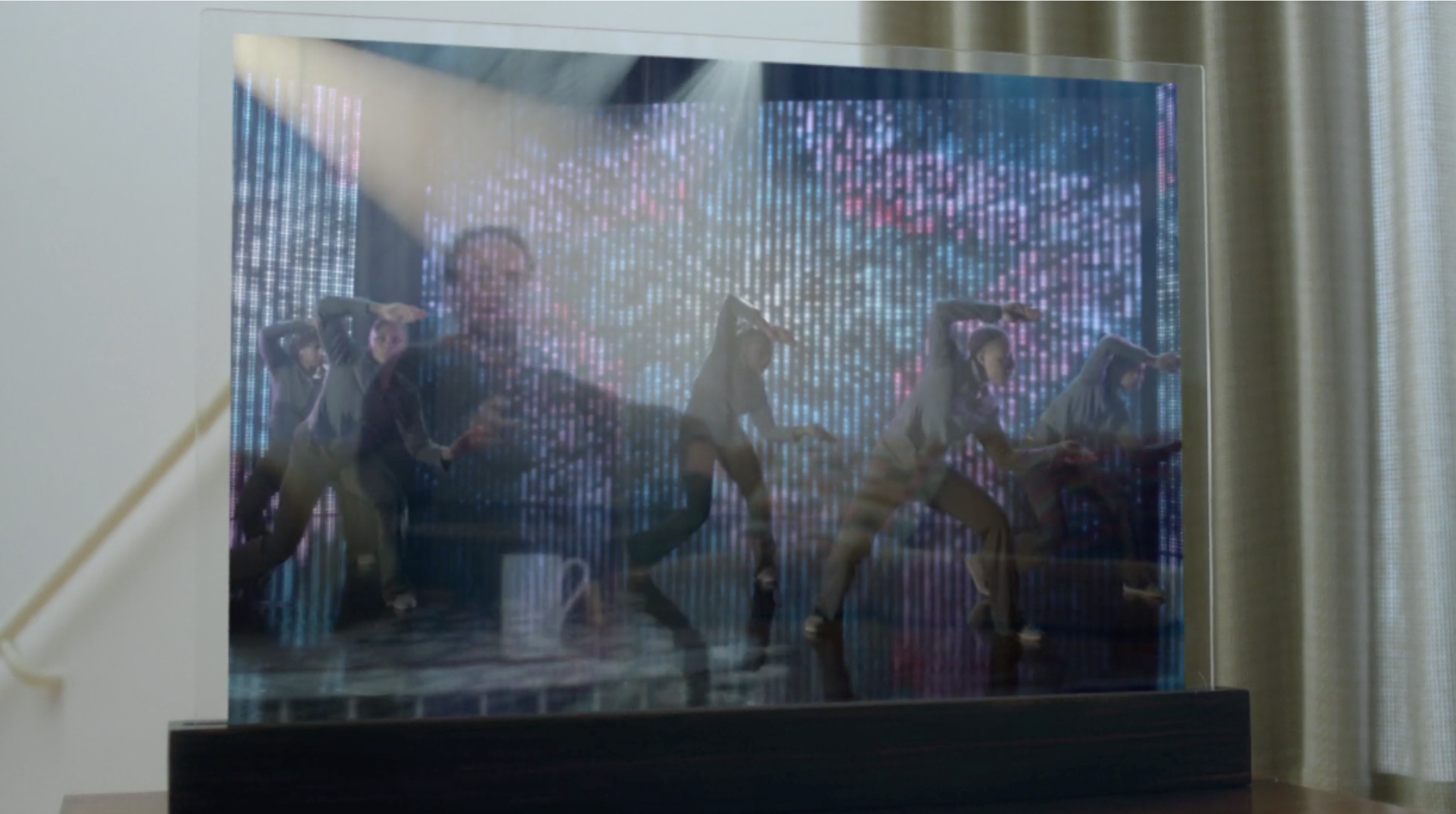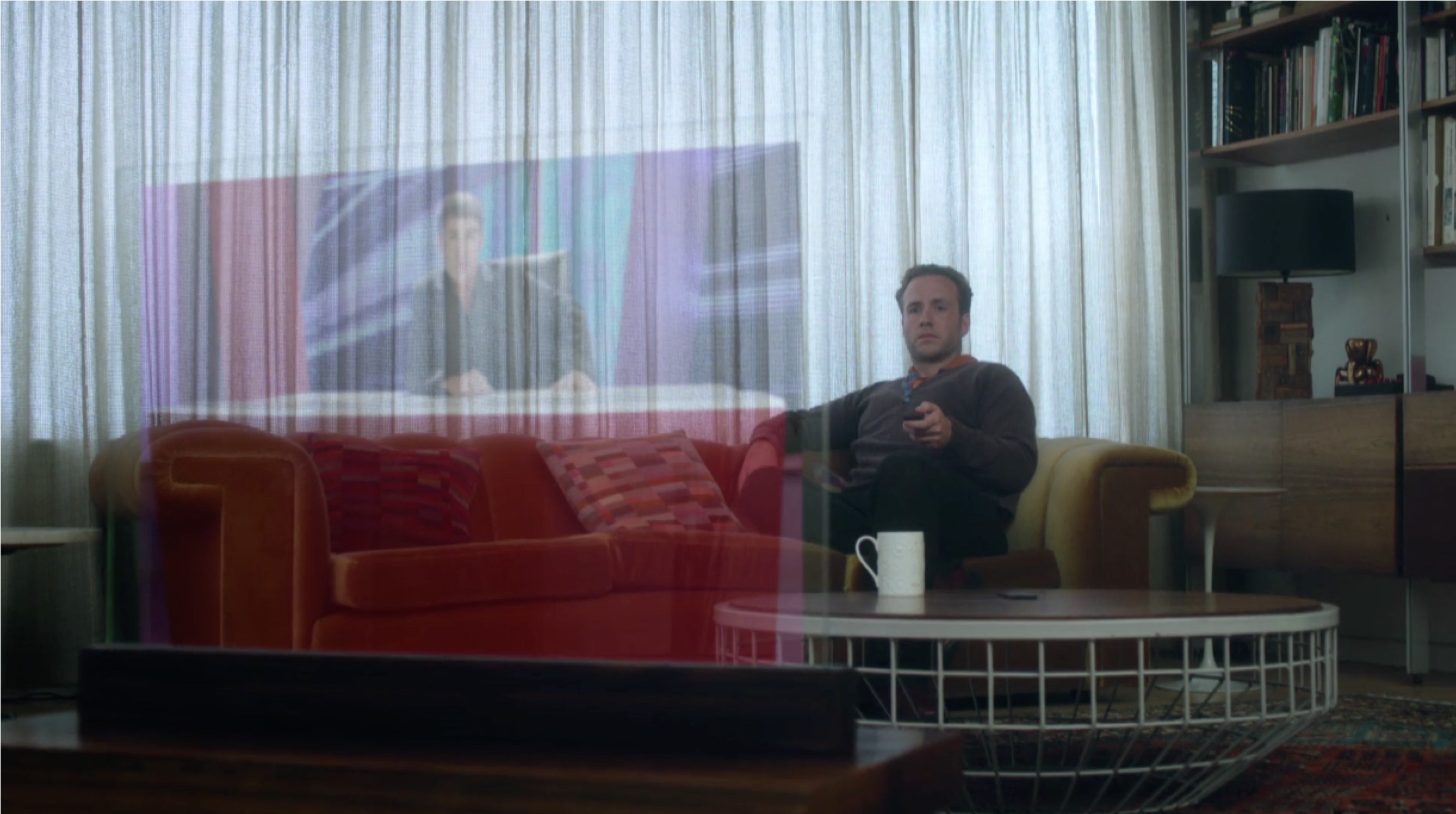 On television, we not only see a "Hot Shots" special featuring breakout winner Selma, the Toy Soldiers segment also featured in "Fifteen Million Merits," and a shot of the television show from season two episode "The Waldo Moment". "CALLOW ANNOUNCES DIVORCE" also shows up as a news snippet.
