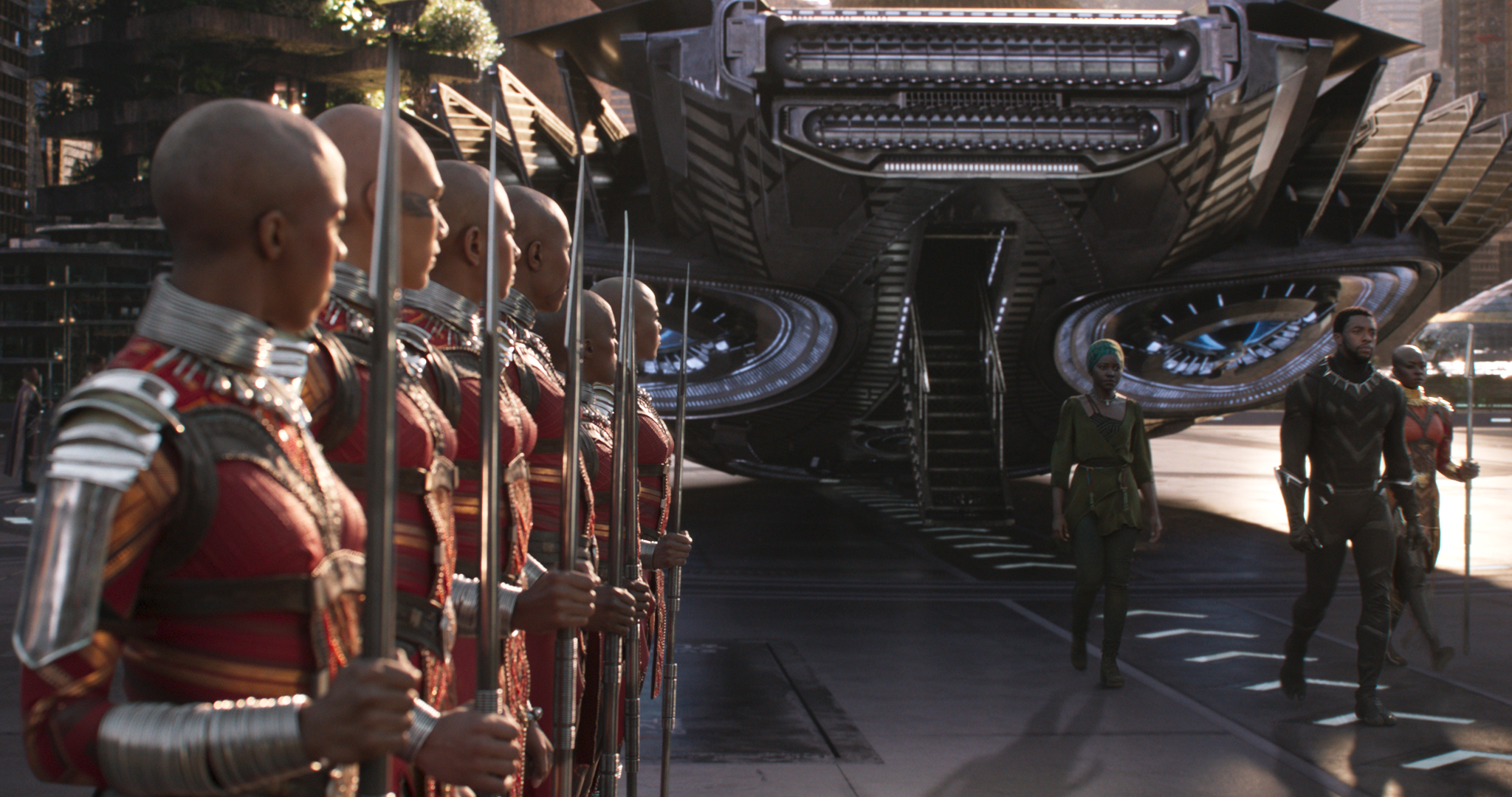 For starters, there's the Dora Milaje, an elite force of female warriors led by Okoye (Danai Gurira). In the comics, they double as a pool of potential wives for the Wakandan ruler; Moore told us that aspect wouldn't be part of the movie because it's "a little creepy."