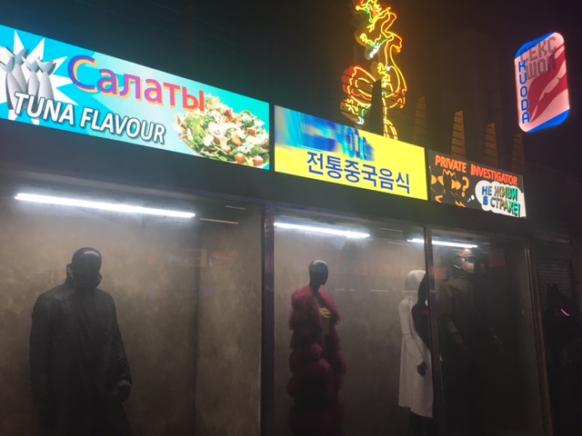 The Blade Runner experience is a can't-miss for fans of Ridley Scott's film. Before you even enter the tent, there's smoke coming out of the door. Lots of smoke at this event. After entering the tent, there's some Blade Runner 2049 concept art hanging from the walls. They're placed next to finished shots from the movie. There's K's (Ryan Gosling) apartment's balcony, where you see him approaching Ana De Armas in the trailer (seen in the photo above). Outside of his apartment, the snowy streets are cleared by a large snowplow.