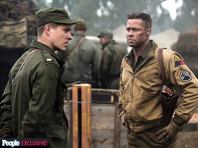 The shots come from People, as the watermarks show. The film also stars Shia LaBeouf, Logan Lerman, Michael Pena, Jon Bernthal and Jason Isaacs, and you'll see some of those guys in the shots below.
