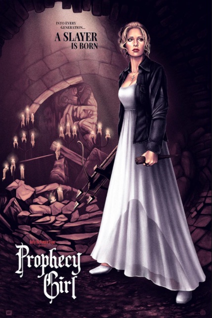 Buffy the Vampire Slayer is one of the most beloved teen horror-comedy shows of the past 20 years, and yet it's never had an art print commissioned for Mondo. That changes today, with Sara Deck's "Prophecy Girl" print, depicting Buffy's iconic prom dress and leather jacket combo that she wore in the season 1 finale to fight the Big Bad, the Master.