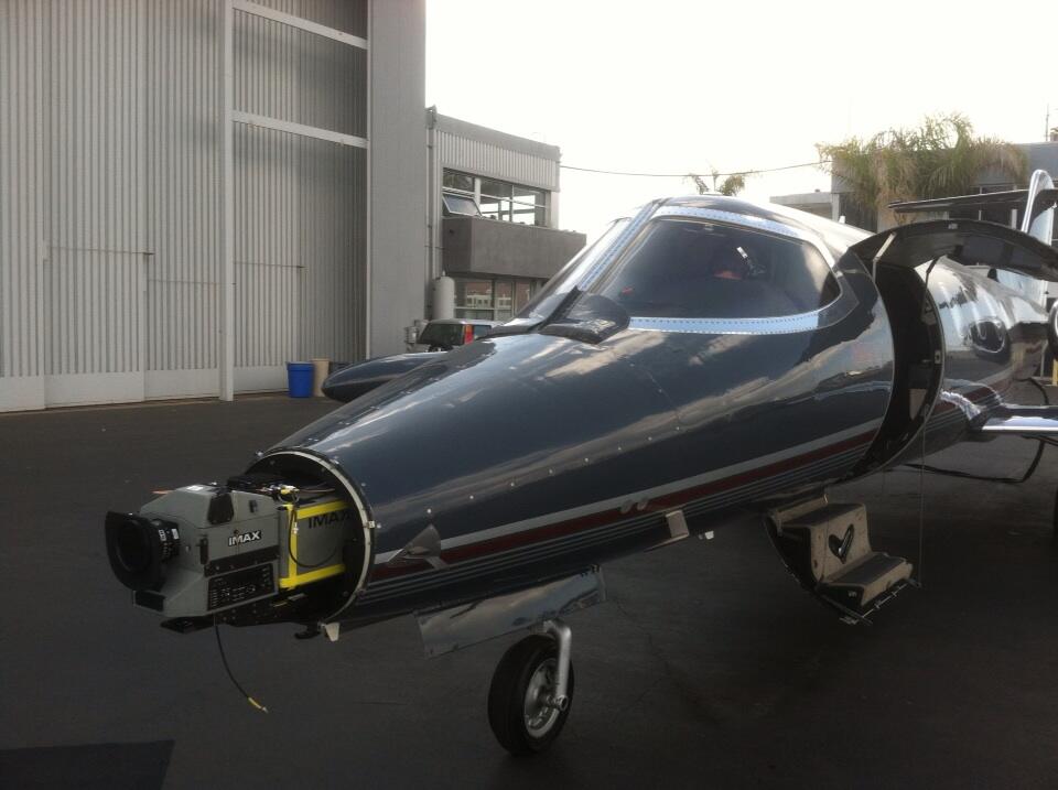 Now he's pushing it even further. A member of Nolan's VFX team tweeted (then removed) an image of a Learjet with an IMAX camera installed in the nose. It's being used to capture photography for Interstellar, Nolan's 2014 space film starring Matthew McConaughey. Check it out below.