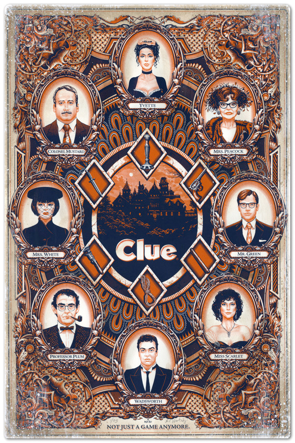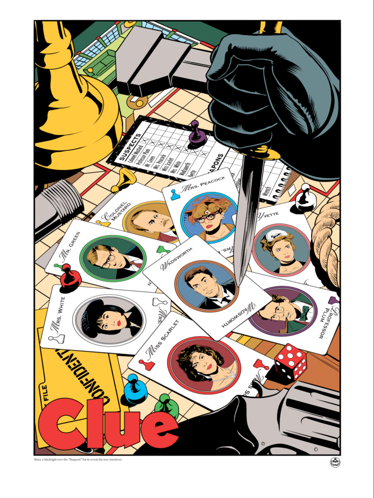 Based on the classic board game of the same name, the film brings to life the strange and perplexing murder mystery that keeps getting worse as the stormy night carries on. If there's one piece of evidence to show that adapting a board game into a movie can work, it's Clue. And Gallery 1988 is paying tribute to the movie with a collection of fantastic, original artwork. Check out the Gallery 1988 Clue artwork after the jump!