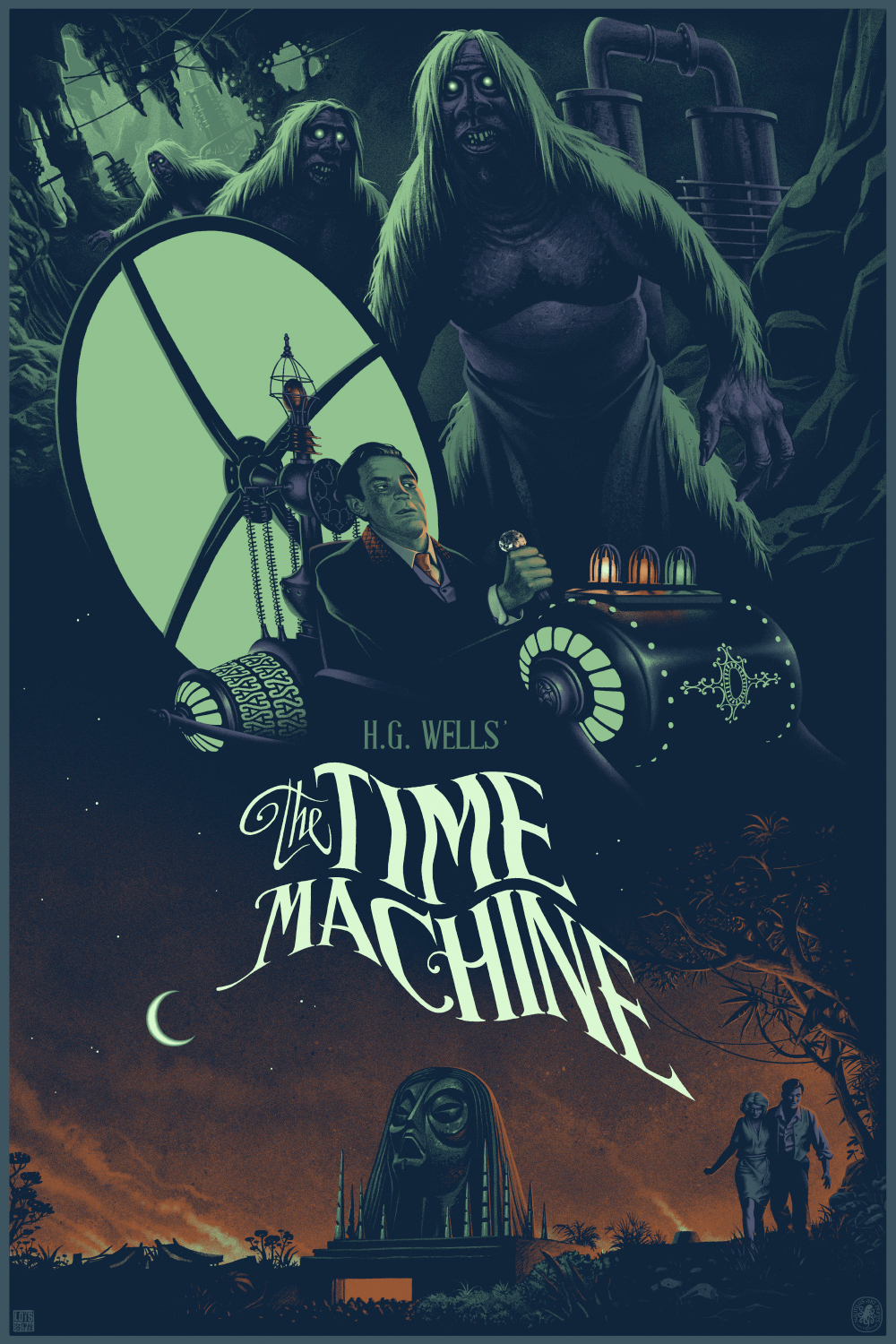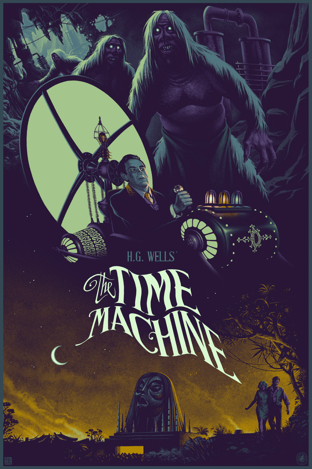 This actually looks like it could easily be the cover of the novel as opposed to an art print for the poster. I really like the wavy text for the title, and the way the Morlocks are lurking behind the time machine. This actually makes me want to see what Julien Loïs could do with a print paying tribute to War of the Worlds as well.