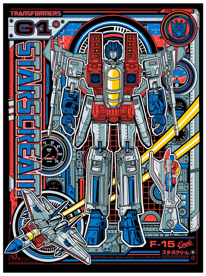 The Acid Free Gallery in Philadelphia, PA is putting that fact to good use at the upcoming Wizard World ComiCon Philadelphia taking place May 30th through June 2nd. They've employed four of the top posters artists working today: Laurent Durieux, Tom Whalen, Kevin Tong and Jesse Philips to make exclusive, robot themed, posters for the event. There's Voltron, Starscream, Soundwave and the Dinobots. Check them out below.