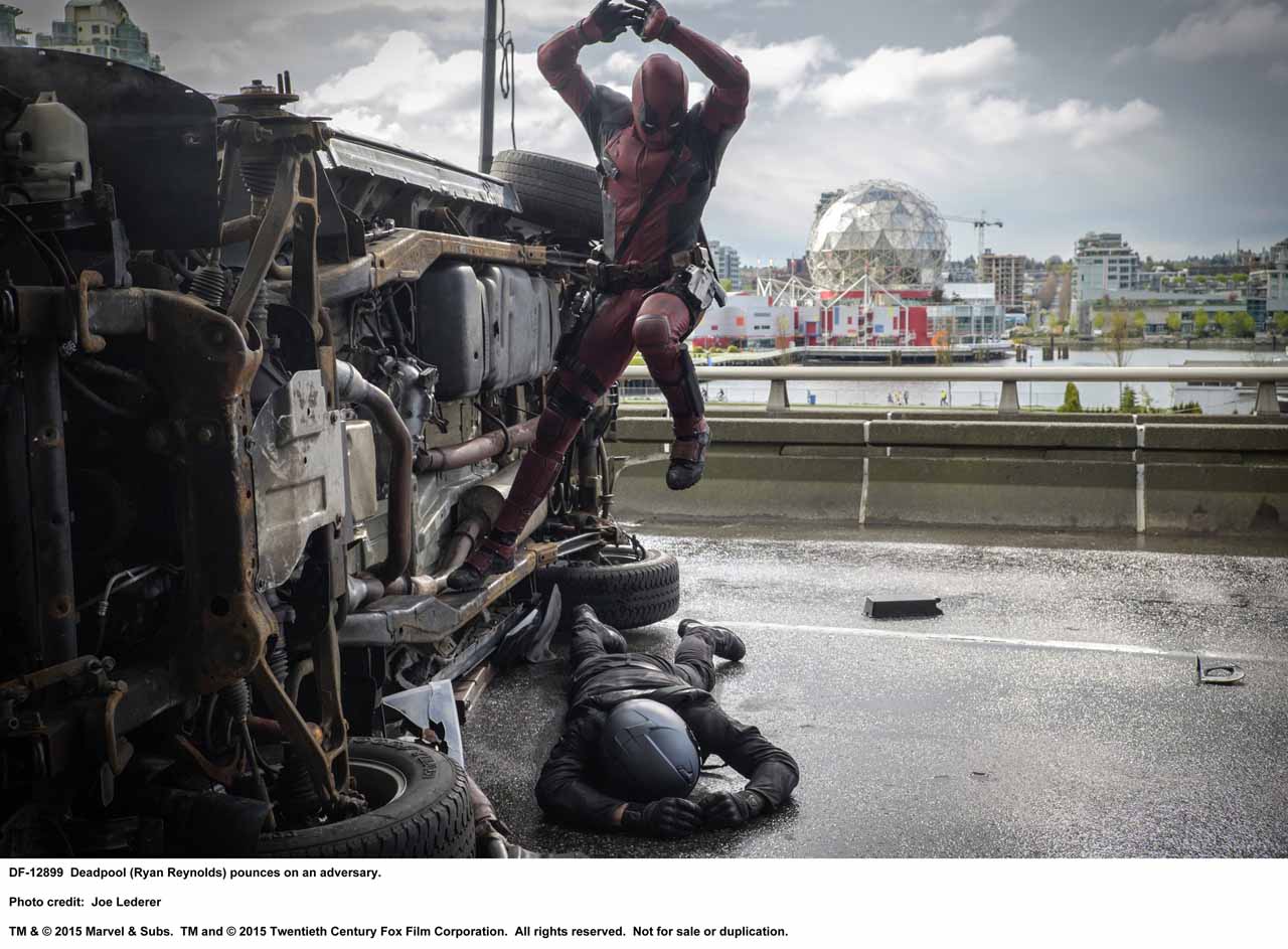 Deadpool made a huge mark on Comic Con, and there will be an official footage release within weeks. (We haven't confirmed whether or not that will be precisely the same footage shown at Comic Con, or some variation, but we do expect that Fox knows people outside the convention want to see something close to what was in Hall H.) Now, at the very least, you can get a look at the last batch of Deadpool photos, now in high resolution. Check those out after the break.