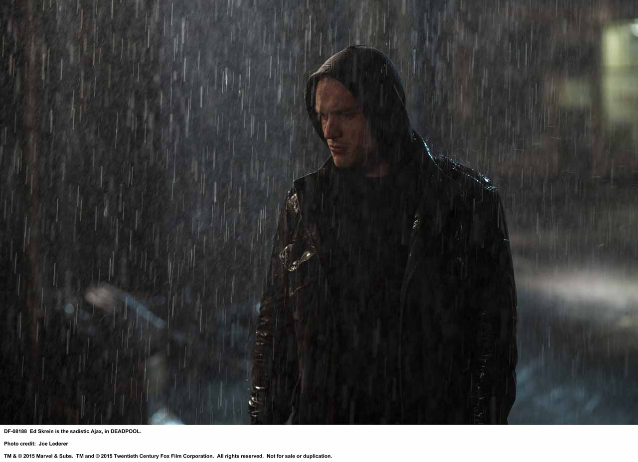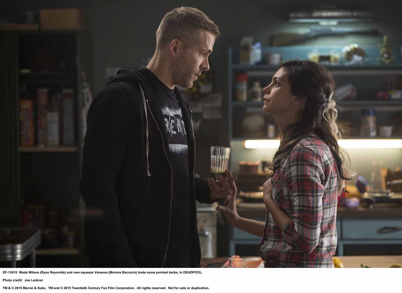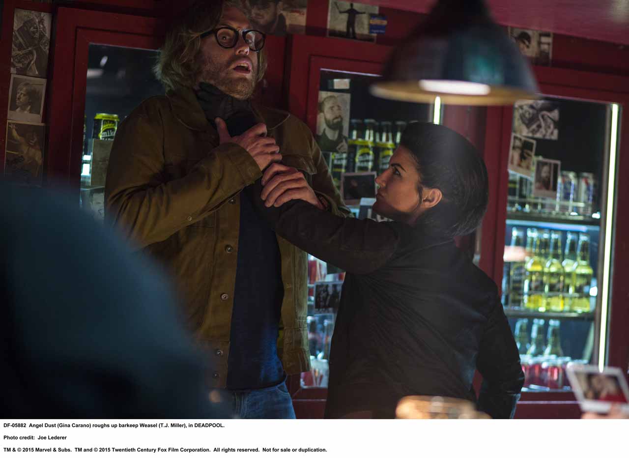 These come via Fox; photo credit to Joe Lederer and David Dolsen. Ryan Reynolds plays Wade Wilson, who accepts what he things to be an experimental cancer treatment, only to find himself dreadfully scarred and imbued with incredible healing powers. In photos below you'll also see Vanessa (Morena Baccarin); Angel Dust (Gina Carano) giving a hand to barkeep Weasel (T.J. Miller); Ed Skrein as the sadistic Ajax; and Brianna Hildebrand as the mutant Teenage Negasonic Warhead.