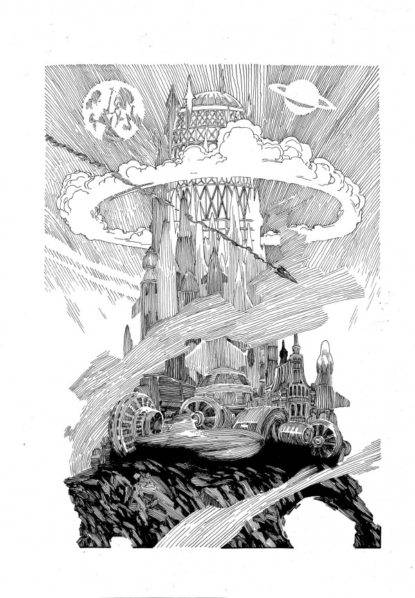 Brian Q. Miller (Smallville) wrote Space Mountain, with illustrations by Kelley Jones (Batman, Sandman). The first image below is the first inked page from Jones, while the second includes studies of Space Mountain and the Moonliner rocket.
