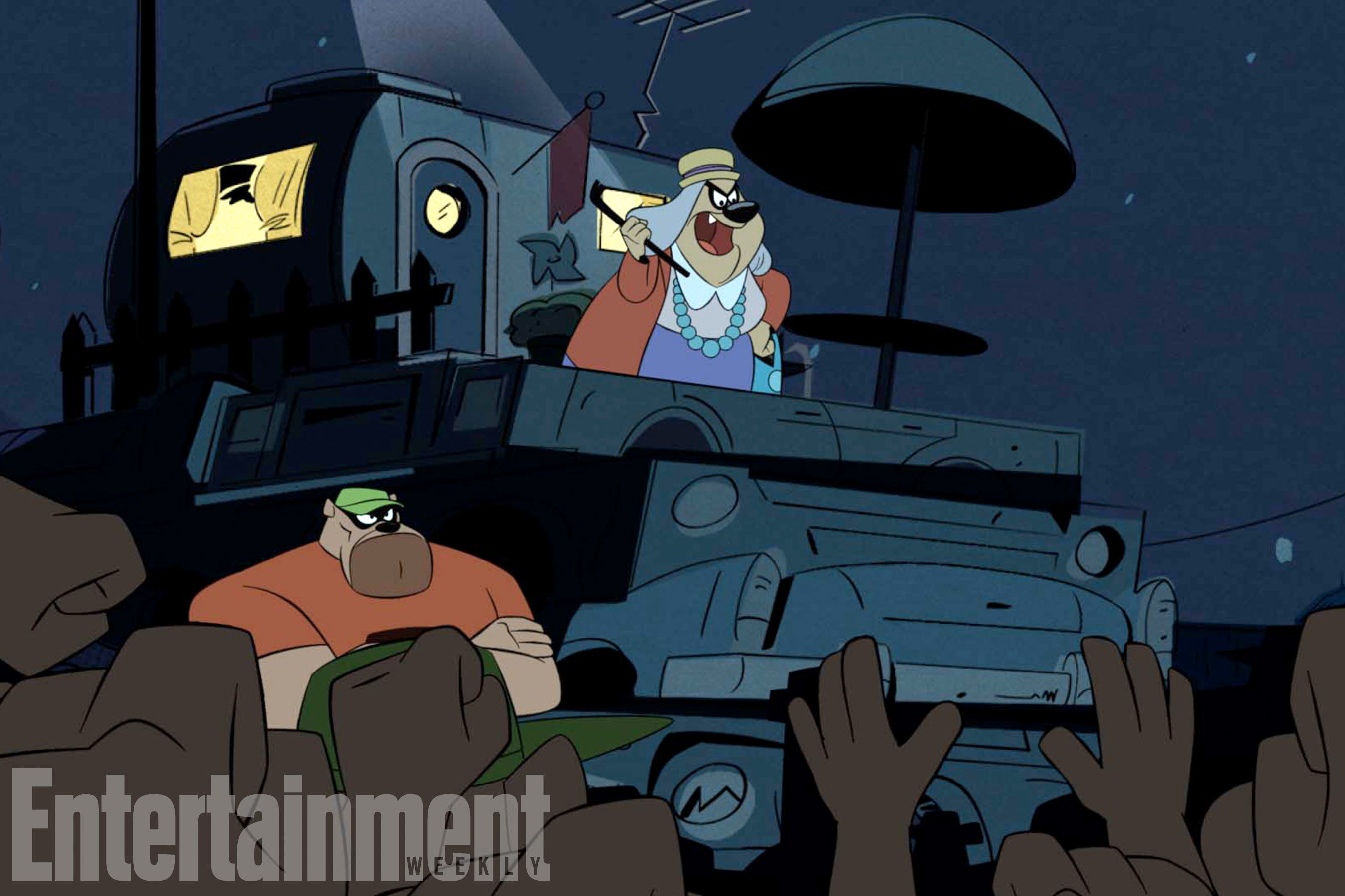 Margo Martindale and Eric Bauza as Ma Beagle and the Beagle Boys