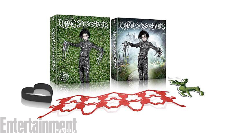 We don't have specifics on the new special features for this anniversary release, but it will reportedly have never-before-seen bonus footage. Plus, it comes with everything you see in the image above, which seems to include a heart cookie cutter, some kind of paper art that could have been made by Edward Scissorhands, and bush sculpture air freshener.