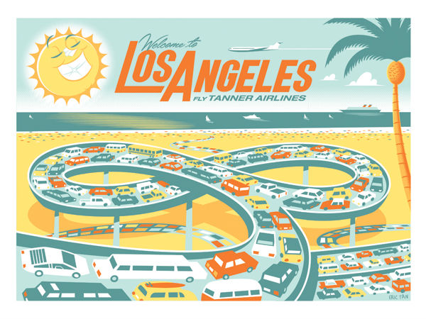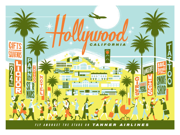 When it came to coming up with an idea that could work as a series for a solo show, my travel sketchbooks and all the travel posters I had created for other things came to mind. Instead of creating film-inspired posters, like the Back to the Future one, I decided to use the actual cities I visited. Cities new to me like Hong Kong, Paris, Barcelona, and London – and ones that were very familiar to me like Los Angeles, San Francisco, New York, and San Diego. Hopefully everyone who either lives in these cities or has visited them will relate to the humor i tried to convey with each one. The show starts June 28th at Gallery1988 East in Los Angeles and runs through July 20th. I hope to see you there!