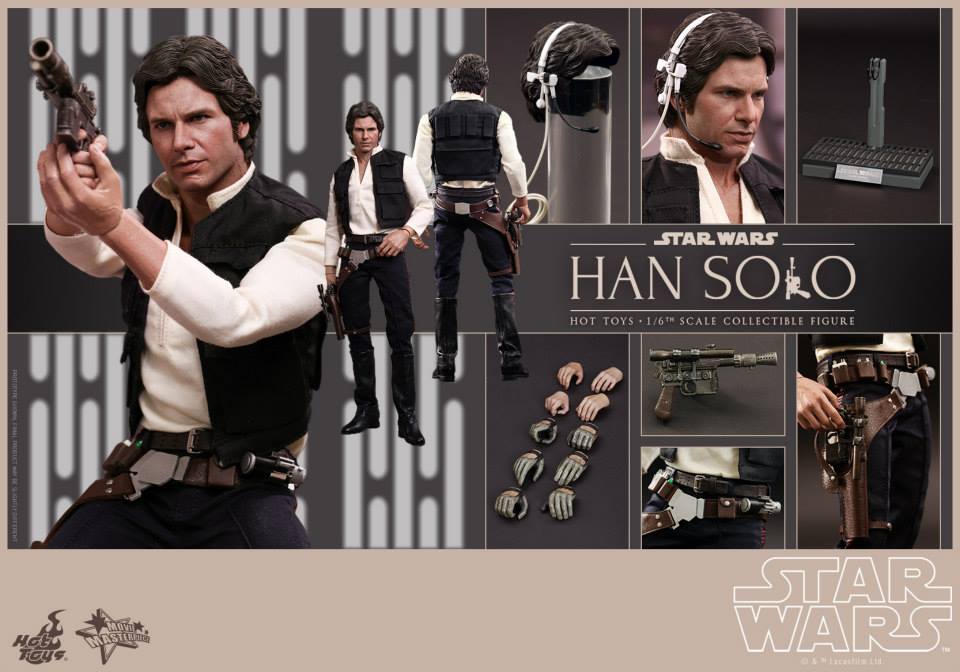 The Hot Toys Star Wars Han Solo and Chewbacca will both be released in the the first half of 2015. You can pre-order them as a set or individually on Sideshow Collectibles. Here's Han Solo.