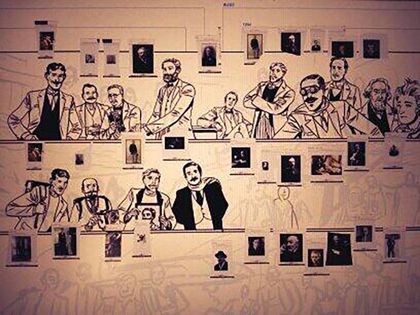 That's a drawing of Nikola Tesla, Thomas Edison, Alexandre Eiffel and others meeting in the "Plus Ultra" society, a mythical group that was said to include a ton of the most important minds of all time, including Walt Disney. The society played a big part in the viral marketing campaign The Optimist, which kicked off last year. You can read a recap here but the main take away is that Plus Ultra helped create an alternate dimension that was accessible though the It's A Small World ride at the 1964 World's Fair.