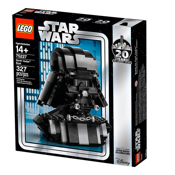 In honor of 20 years of LEGO Star Wars merchandise, the building brick company is celebrated with a buildable bust of Darth Vader. In theory, this is a cool collectible, butt here's something weird about Darth Vader's eyes that make this look like he's wearing sunglasses instead of actually resembling a brick version of his helmet. This one you'll also be able to get at Target while supplies last.