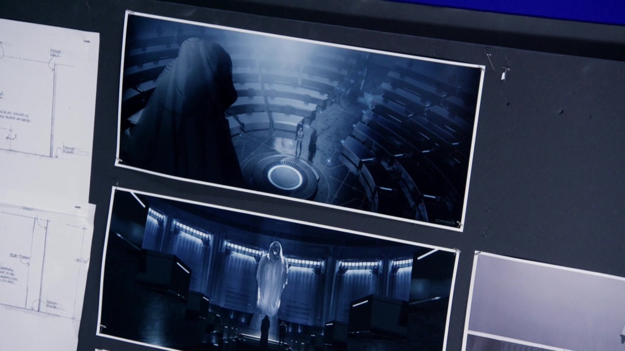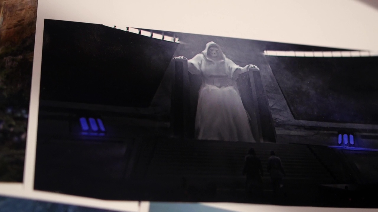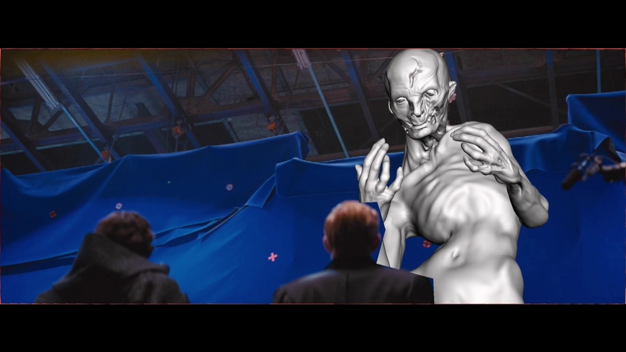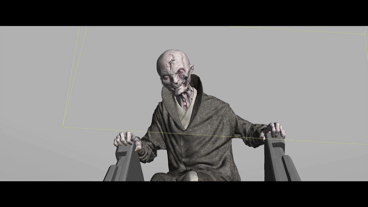 Reddit user Kevin Moore combed through the special features on the Blu-ray of The Force Awakens and came away with some very interesting screen shots of Andy Serkis' Supreme Leader Snoke. First up are a few pieces of concept art that showcase Snoke's early looks, including one where he wore white hooded robe, and a handful of alternate takes on the chamber where his hologram addresses Kylo Ren and General Hux. There are also a few images of the character in various stages of his creation (including a real-life cast model), which offer a much less hazy look at the mysterious leader of the First Order. From this angle, that wound on the side of this face is starting to look more and more like the work the work of a lightsaber. Maybe. Perhaps. I'm just saying...