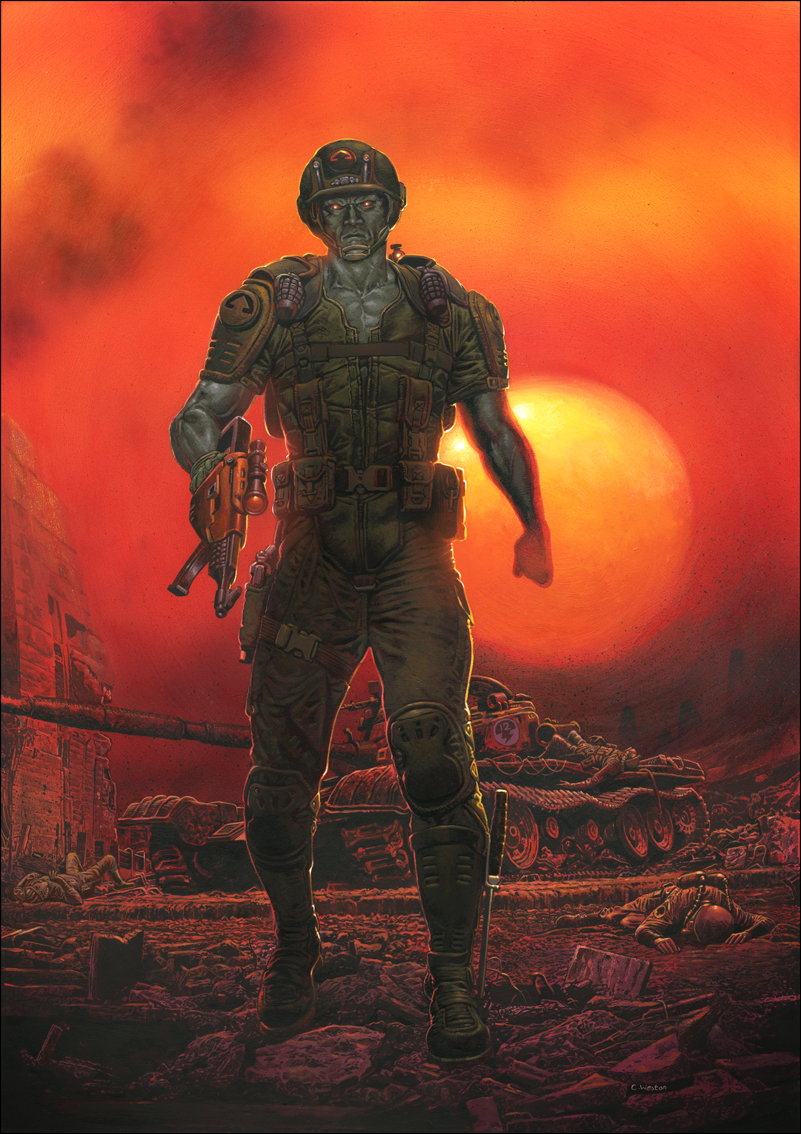 OH! AND! I totally forgot about this but ... the movie adaptation of the 2000AD comic ROGUE TROOPER, which I'm attached to write. I'm still trying to get that set up and I have some concept art we did for the movie that's never been seen.