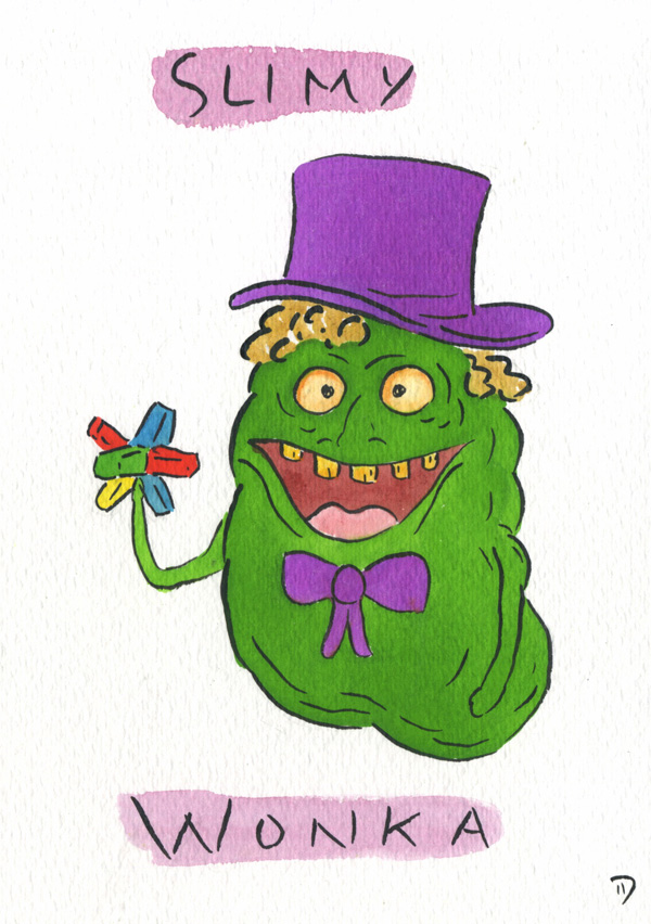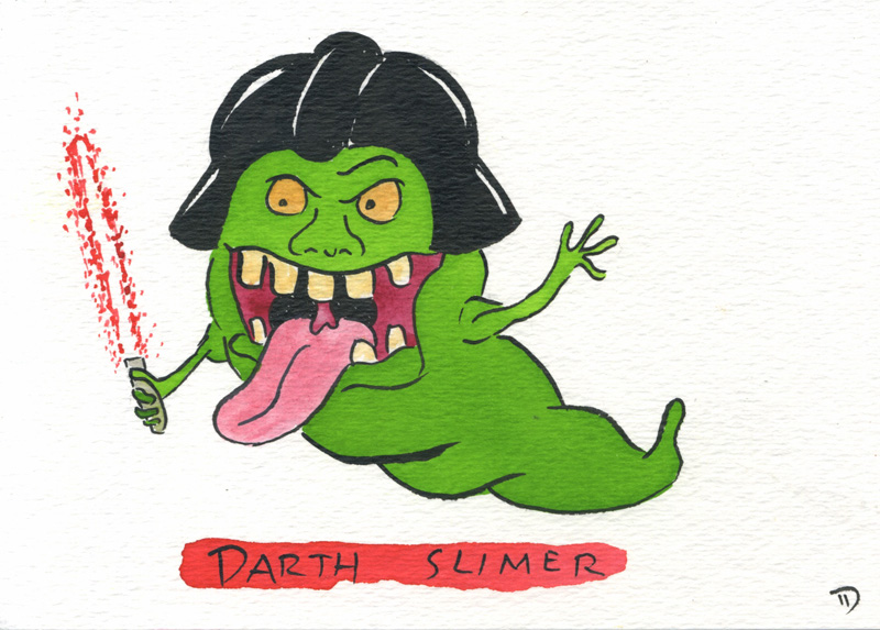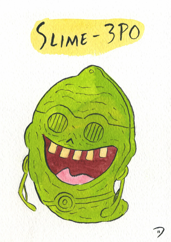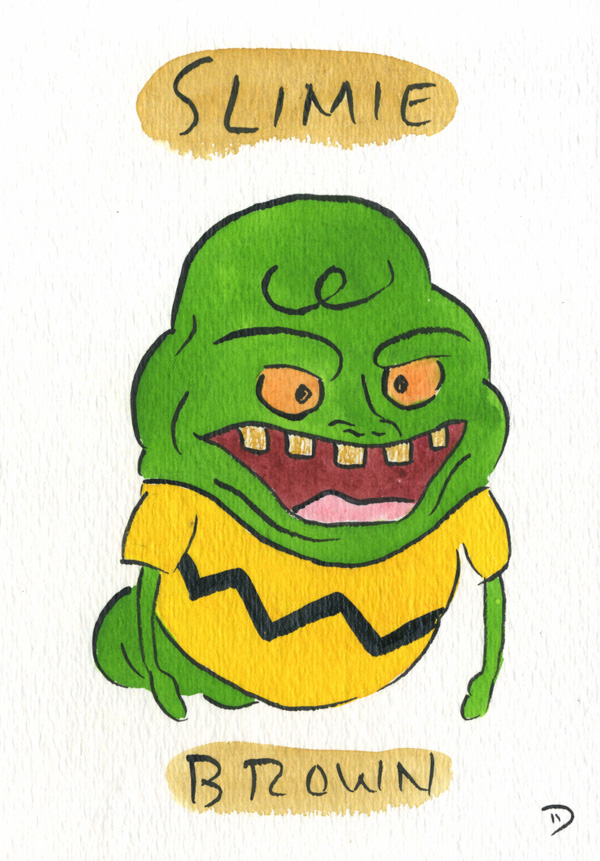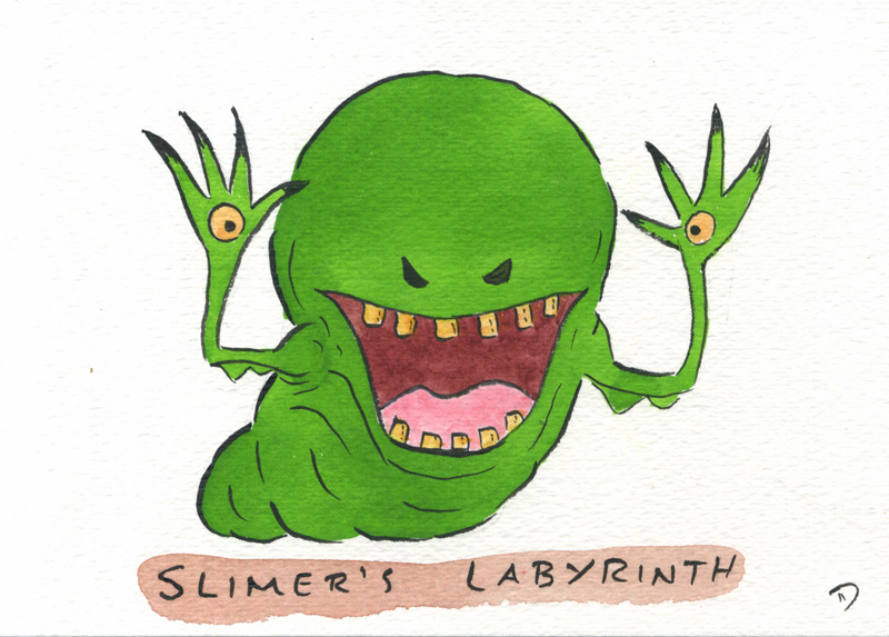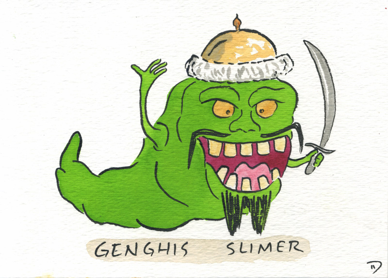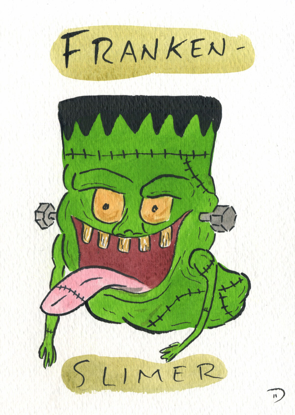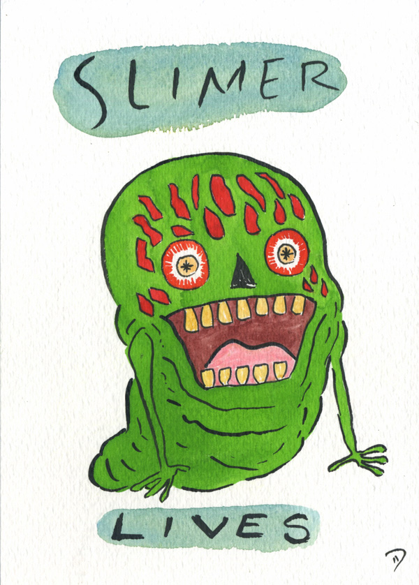 Dan Goodsell – Slimers, ink and watercolor drawing, 5 x 7 inches