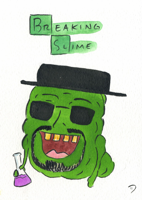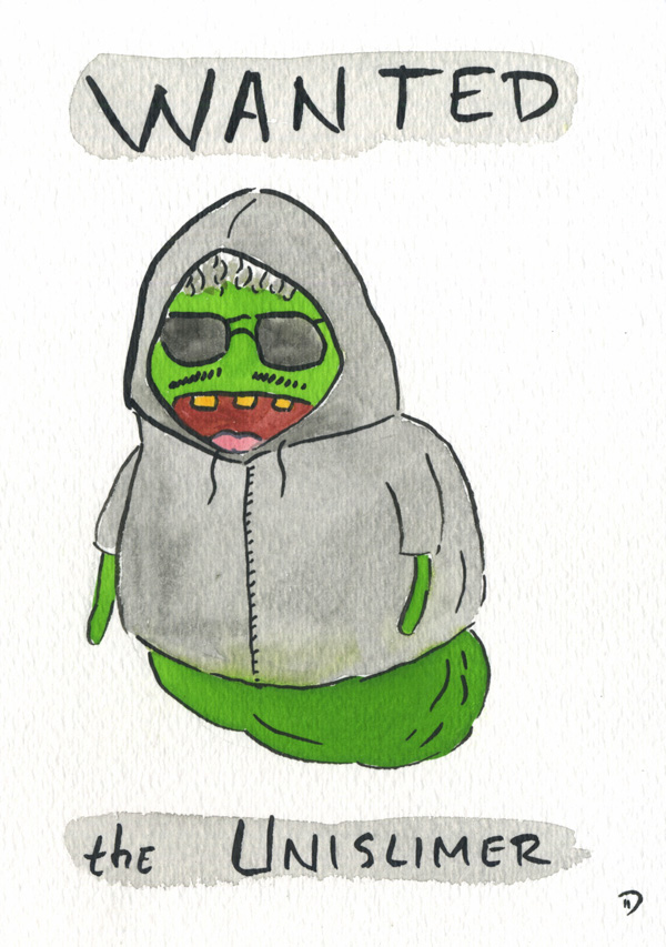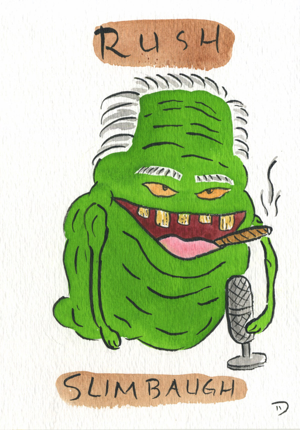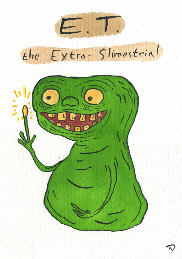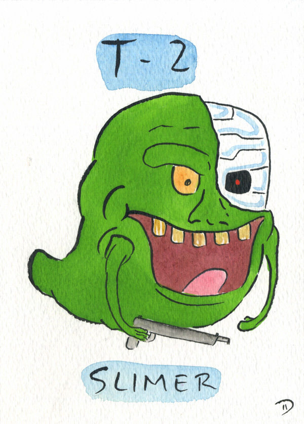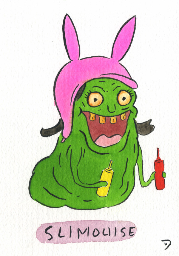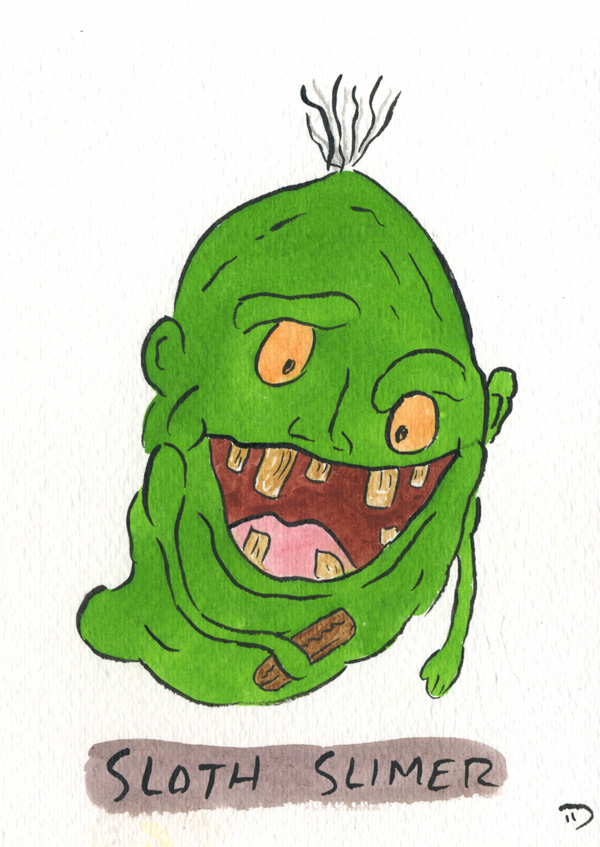 Dan Goodsell – Slimers, ink and watercolor drawing, 5 x 7 inches