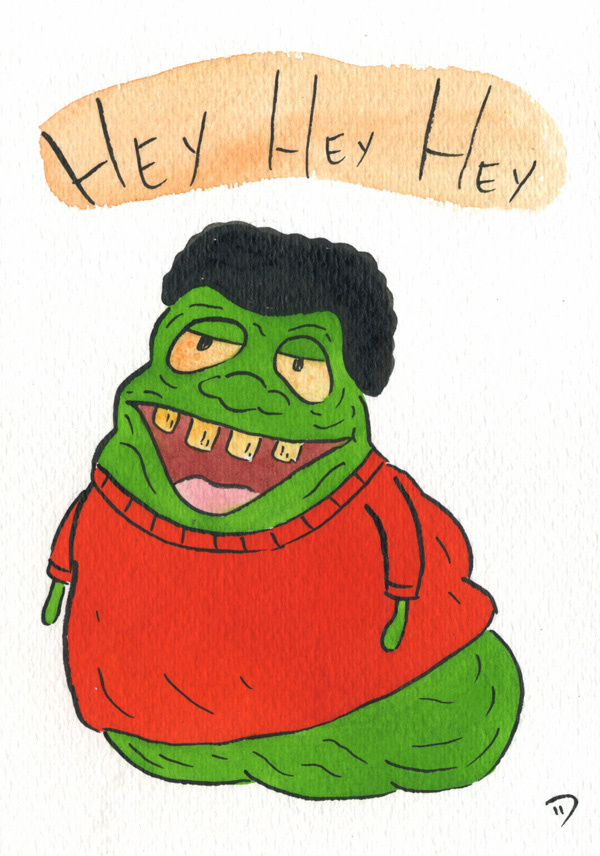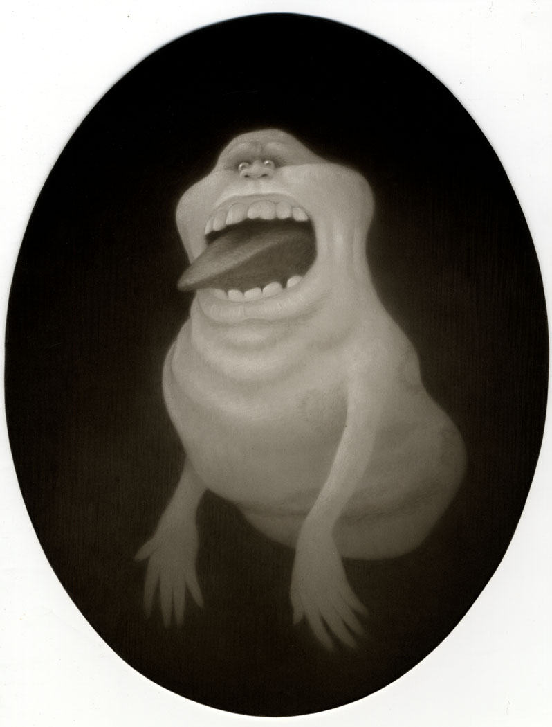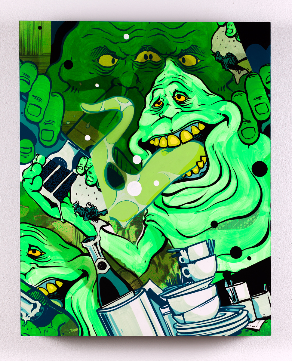 Jason Edmiston – "Slimer," acrylic on wood panel, 12 x 16 inches
