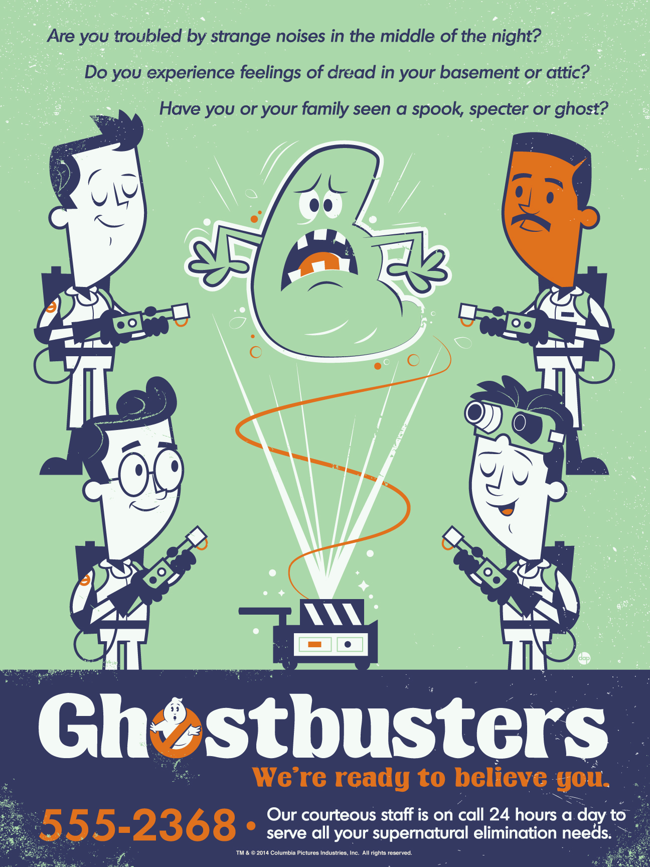 Anthony Petrie – "Ghostbusted," 5 color screenprint, 24 x 36 inches, numbered edition of 300 (Variant below)