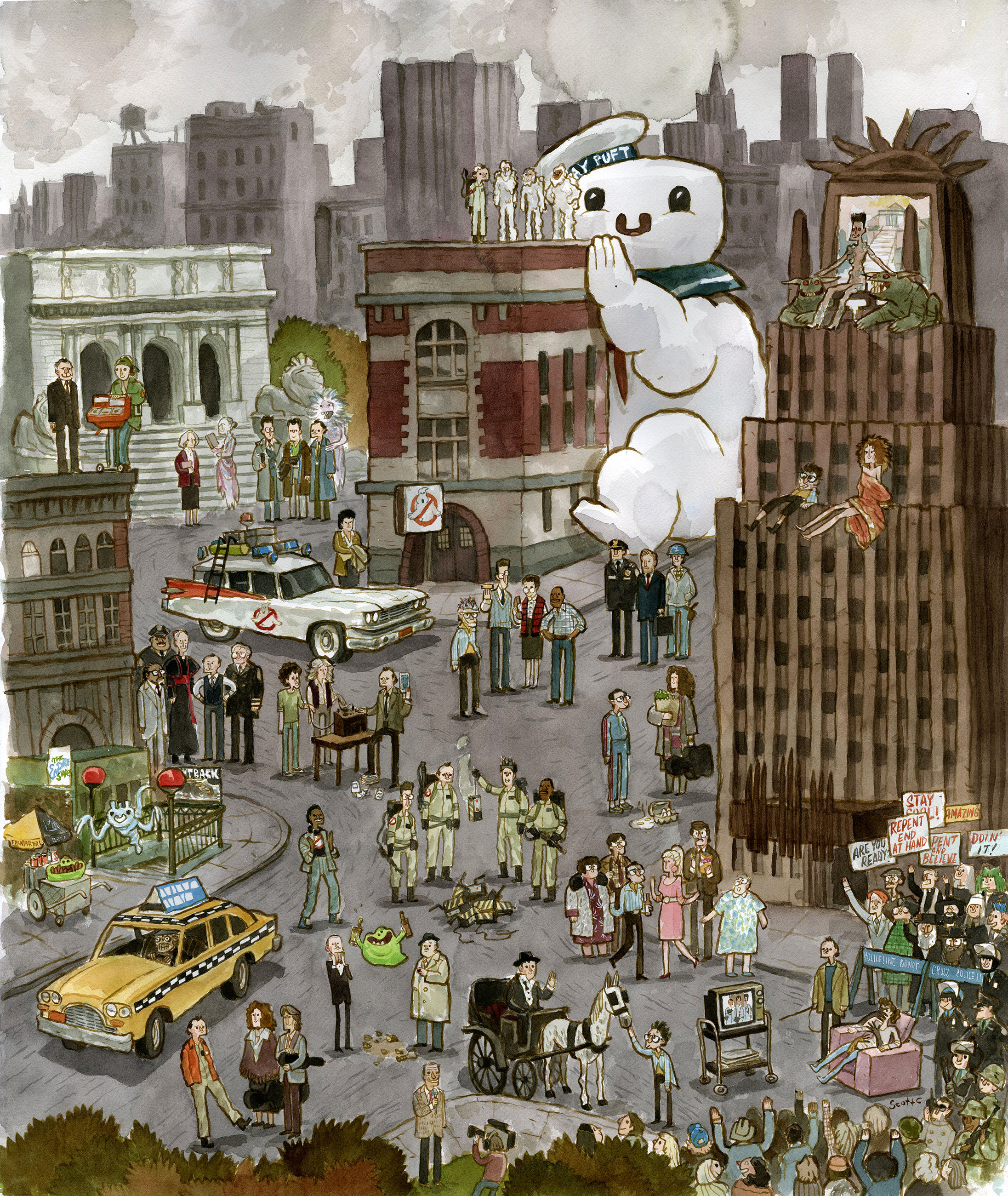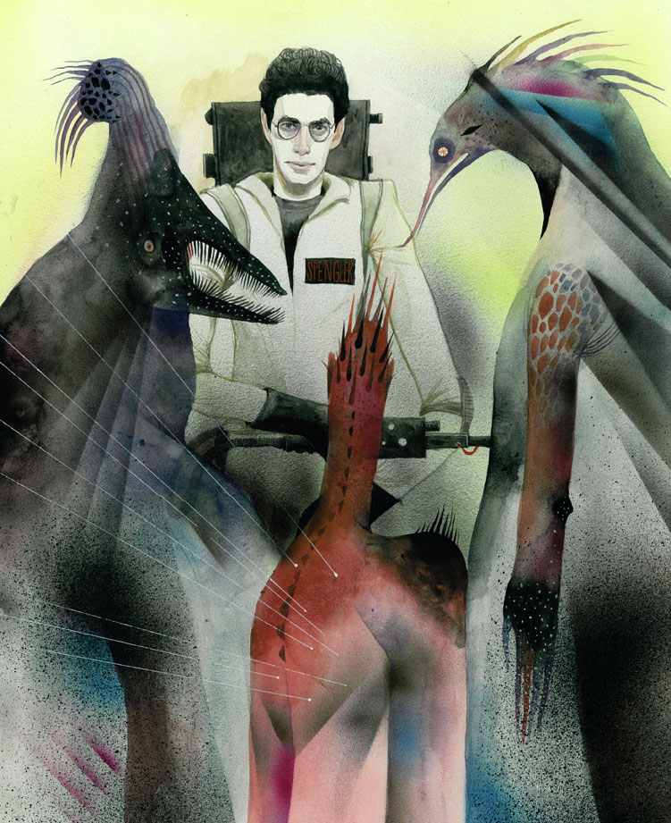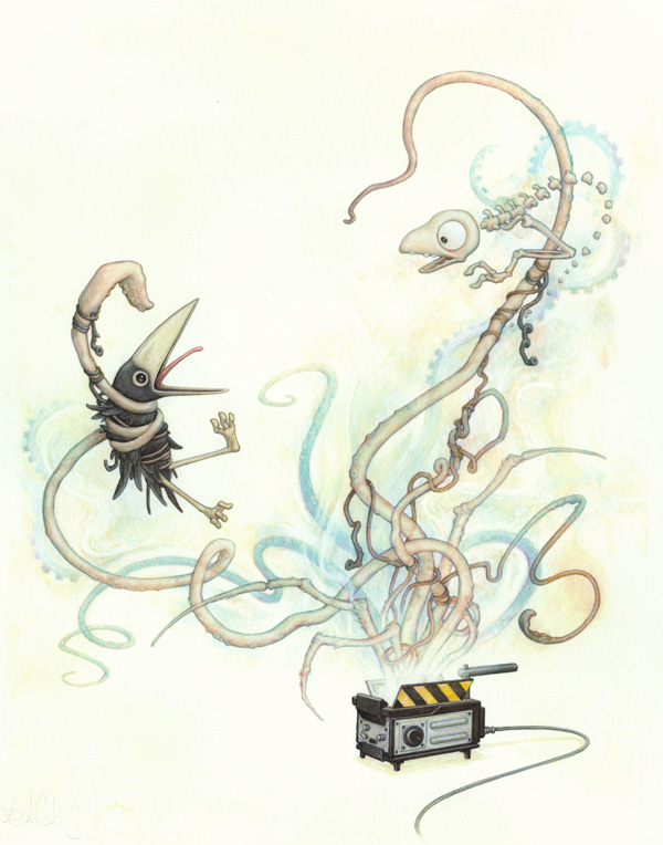 Andrew DeGraff – "Paths of the Ghostbusters," ink and gouache on paper, 8 x 10 inches