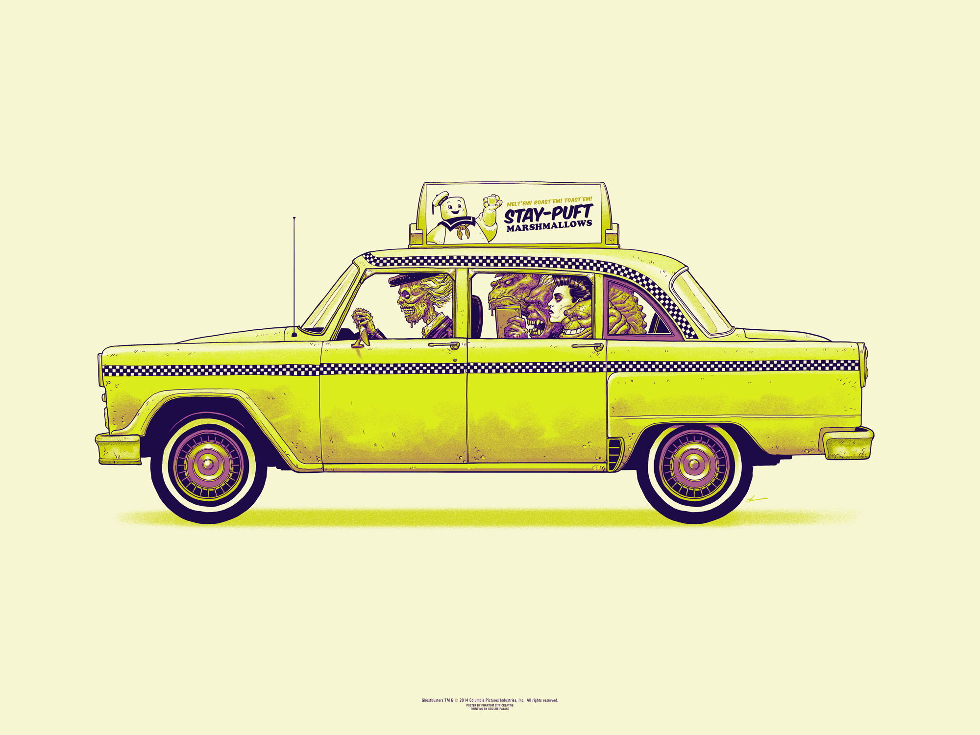 DKNG – Ecto-1, 4 color screenprint, 18 x 24 inches, signed and numbered edition of 84 (Regular below)