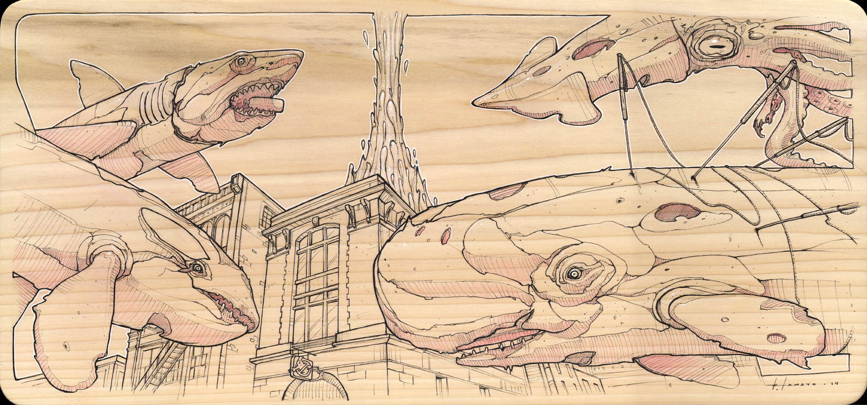 Sean Clarity – "Ghost Break," acrylic on board, 34 x 18 inches