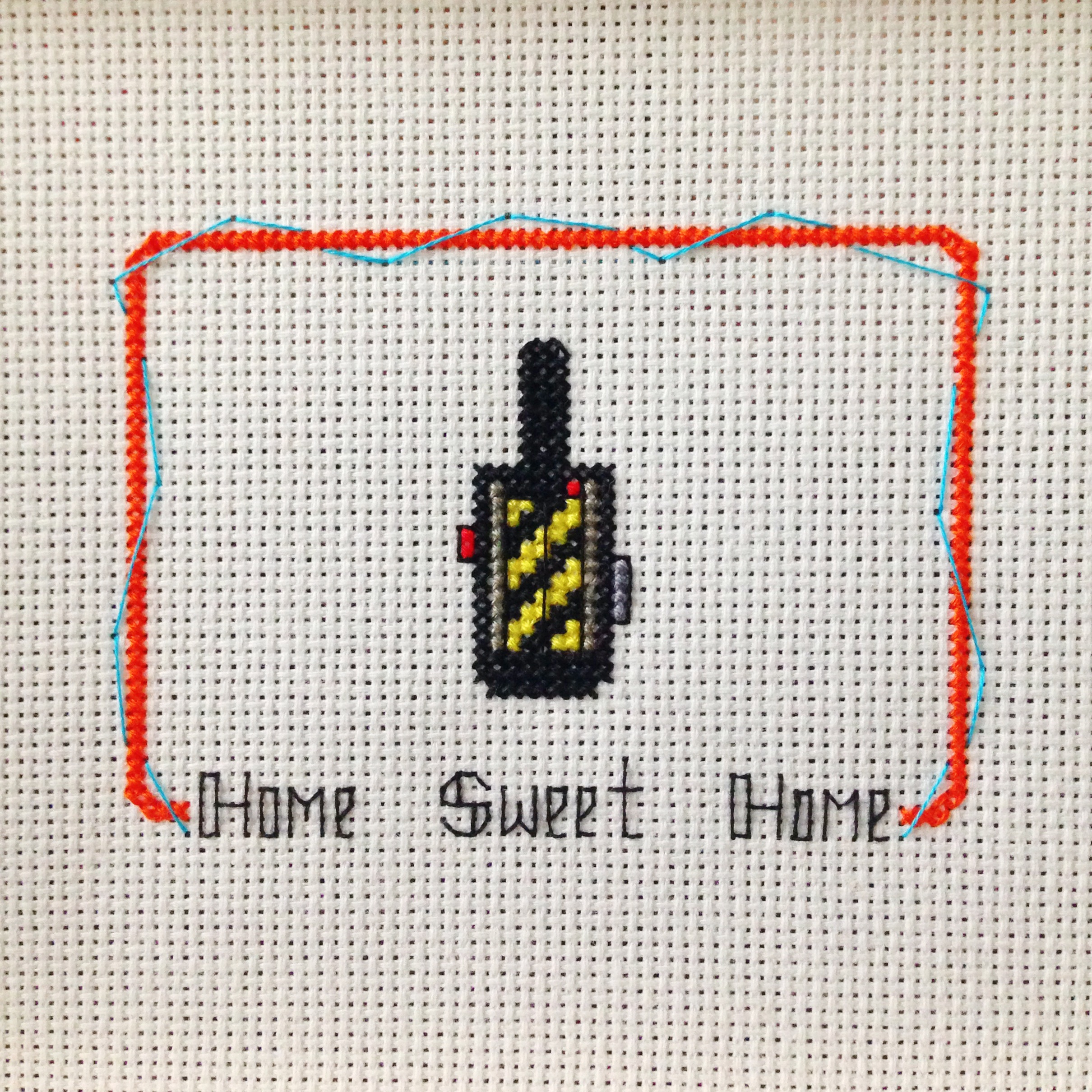 Oh Sew Nerdy – "Bless This House Of Ghostbustin'," cross stitch, 5 x 7 inches