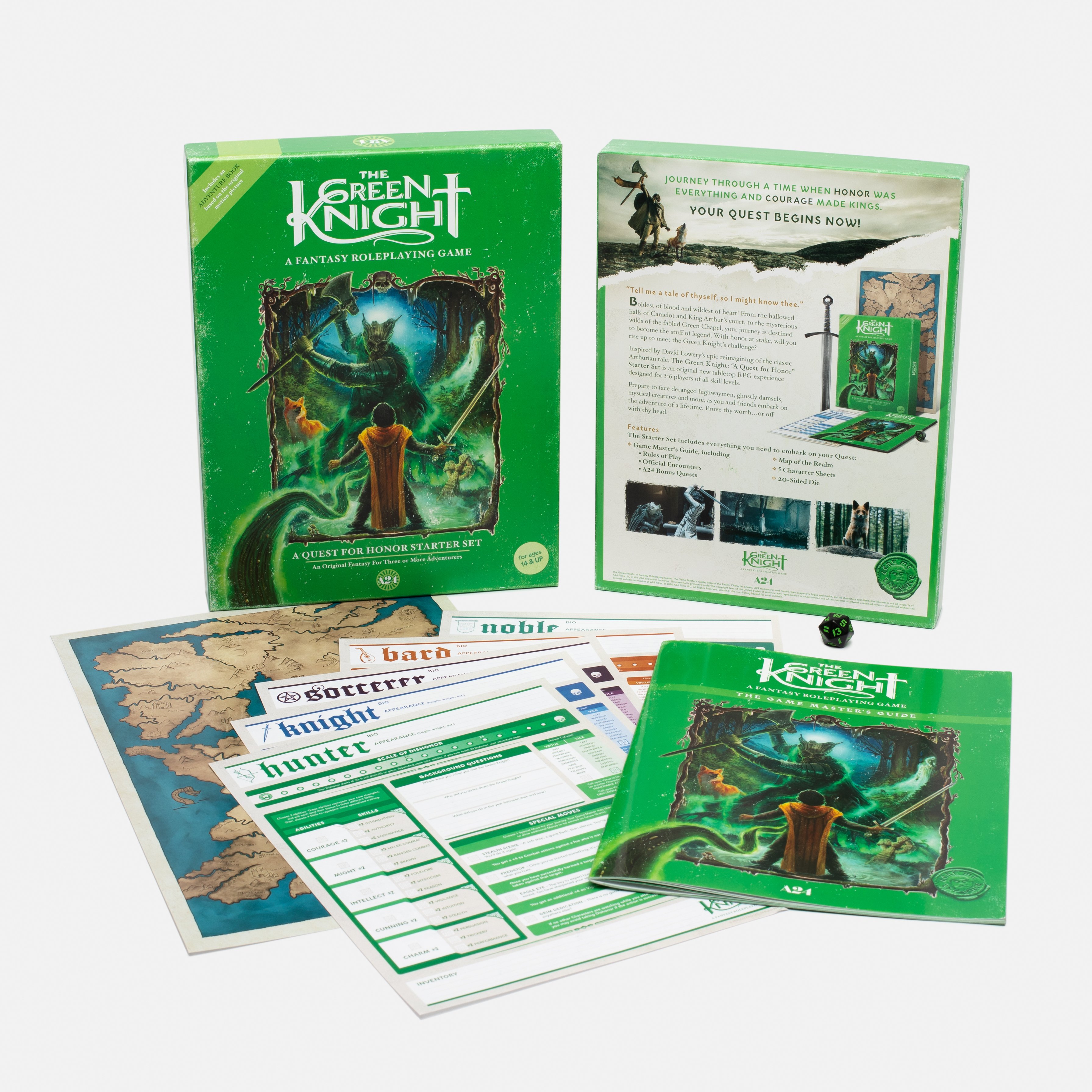 A24 knows you're probably bored out of your mind sitting around at home while the coronavirus pandemic rages on, but instead of making the decision to release the movie to paid video on demand services, they've enlisted professional game master Timm Woods (who evidently "runs over a dozen games a week from his Brooklyn apartment") to help create a roleplaying game inspired by the new movie. The Green Knight: A Fantasy Role Playing Game is now available to purchase for $35 at shop.a24films.com.