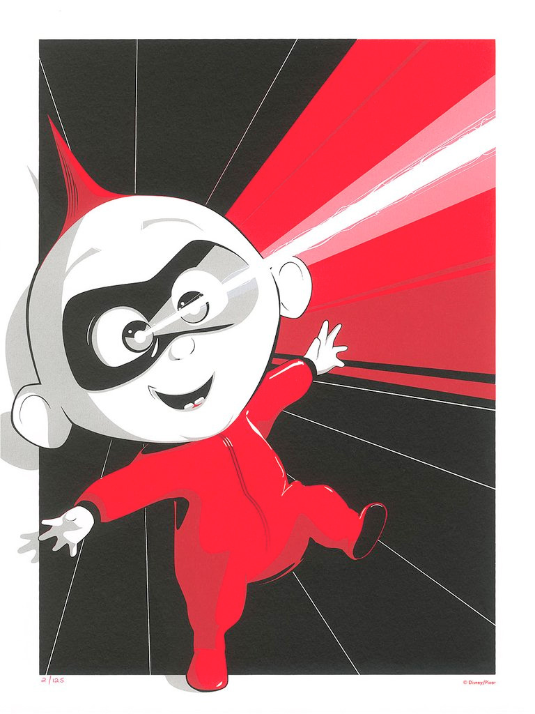 Craig Drake has come through with a set of smaller prints featuring each member of The Incredibles. Using his signature style, he's put Mr. Incredible, Elastigirl, Dash, Violent and Jack-Jack on their own hand-number 12x16 prints, each with an edition of 125. The only downside is you'll have to pay $40 for each print. However, you can use the promo code "SUPER" to buy four and get one free. That's still $160, but if you're a big Incredibles fan, it might be worth it.