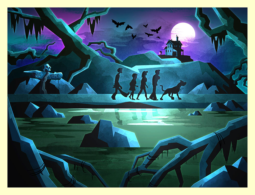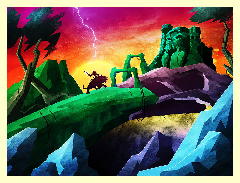 Being a child of the 1980s, Saturday mornings were spent in front of the television with a bowl of cereal watching all of my favourite cartoons. What always struck me about those classic shows, such as Spider-man, Masters of the Universe, Scooby-Doo and the Superfriends were the beautifully hand-painted backgrounds. Sadly, that form of animation has faded away. CELSCAPES is a celebration of those classic painted backgrounds, depicting scenes from films, television and cartoons.