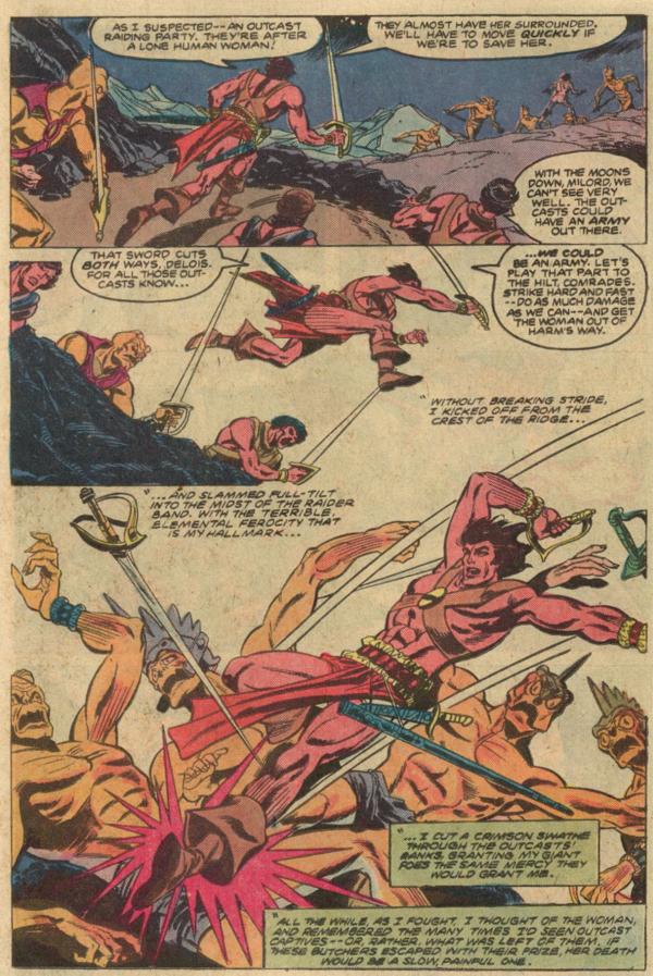 That's John Carter, by the way, swooping in at the bottom of the page on the left. Well, it's not him in the published version of the story, but it would have been ol' JC if this art had run as was originally intended to in the original series.