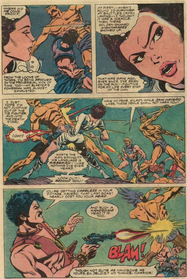 And since Star Wars was partially the product of a huge set of pulp influences anyway, even the John Carter art managed to look somewhat appropriate. Kinda. Well, OK, parts of the story are still pretty obviously John Carter pages.