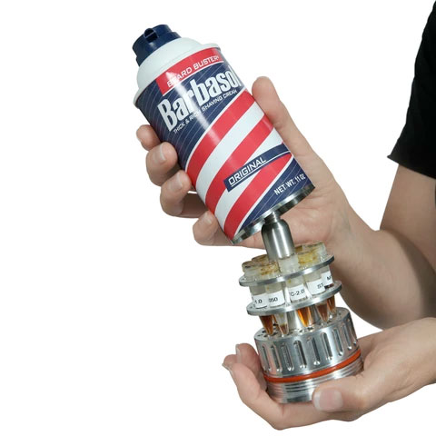 The Jurassic Park shaving cream cryo can has a mechanism that allows the chassis to pop open just as it does in the movie. The entire item is made out of aluminum and metal with a plastic cap, retro Barbasol label as it was in 1993, and 10 individually labeled dinosaur embryo housings. It was created with the actually screen-used prop from the Universal archives. The only downside is that the item doesn't dispense shaving cream or keep the embryos cool. So I guess we won't be committing espionage anytime soon.