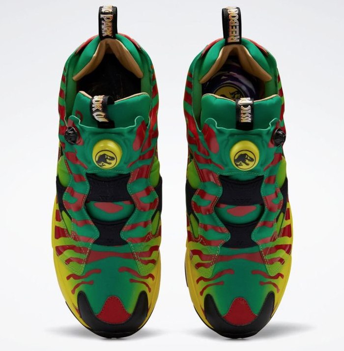 When you walk into a room wearing Jurassic Park sneakers, does John Williams' theme music suddenly start blaring from whatever speakers happen to be in that room? I suppose we'll soon find out, because Reebok is about to release the Jurassic Park x Reebok Instapump Fury from designer Steven Smith sometime this year. The release of these shoes was originally set to coincide with the release of Jurassic World: Dominion, but even though that film has been delayed due to the pandemic, that's not going to stop these shoes from stomping their way out into the world. Check out some more photos below.