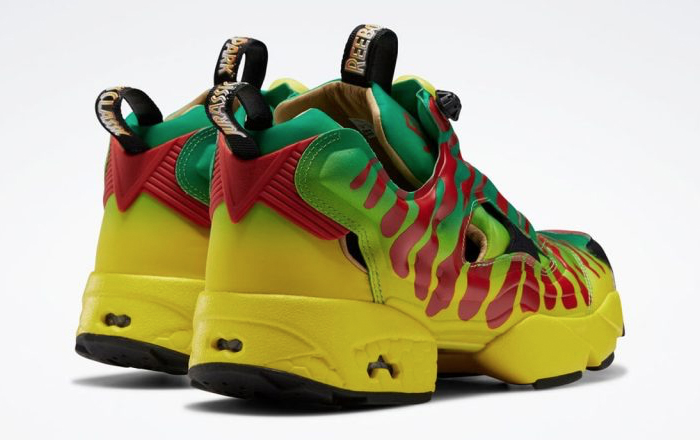 Once these shoes hit shelves at a still-unconfirmed date later this summer, you'll be able to get a pair for $180. House of Heat describes them like this: "the pair takes on the franchise's iconic track detail, with uppers of green and yellow gradient slashed with red claw marks throughout for a perfect tribute to the original people mover. The signature wordmark lettering features in 3D rubber at the front and rear pulls reading 'Reebok Classic' and 'Jurassic Park' respectively, while the world-renowned T-Rex silhouette logo rests atop the Pump tech at the tongue. Interestingly, Reebok branding has been removed at the forefoot and heel, while the undercarriage sees a special tear detail that shows the internal workings of the truck. Capping off the design is an elegant tan leather liner and special co-branded graphic insole set."