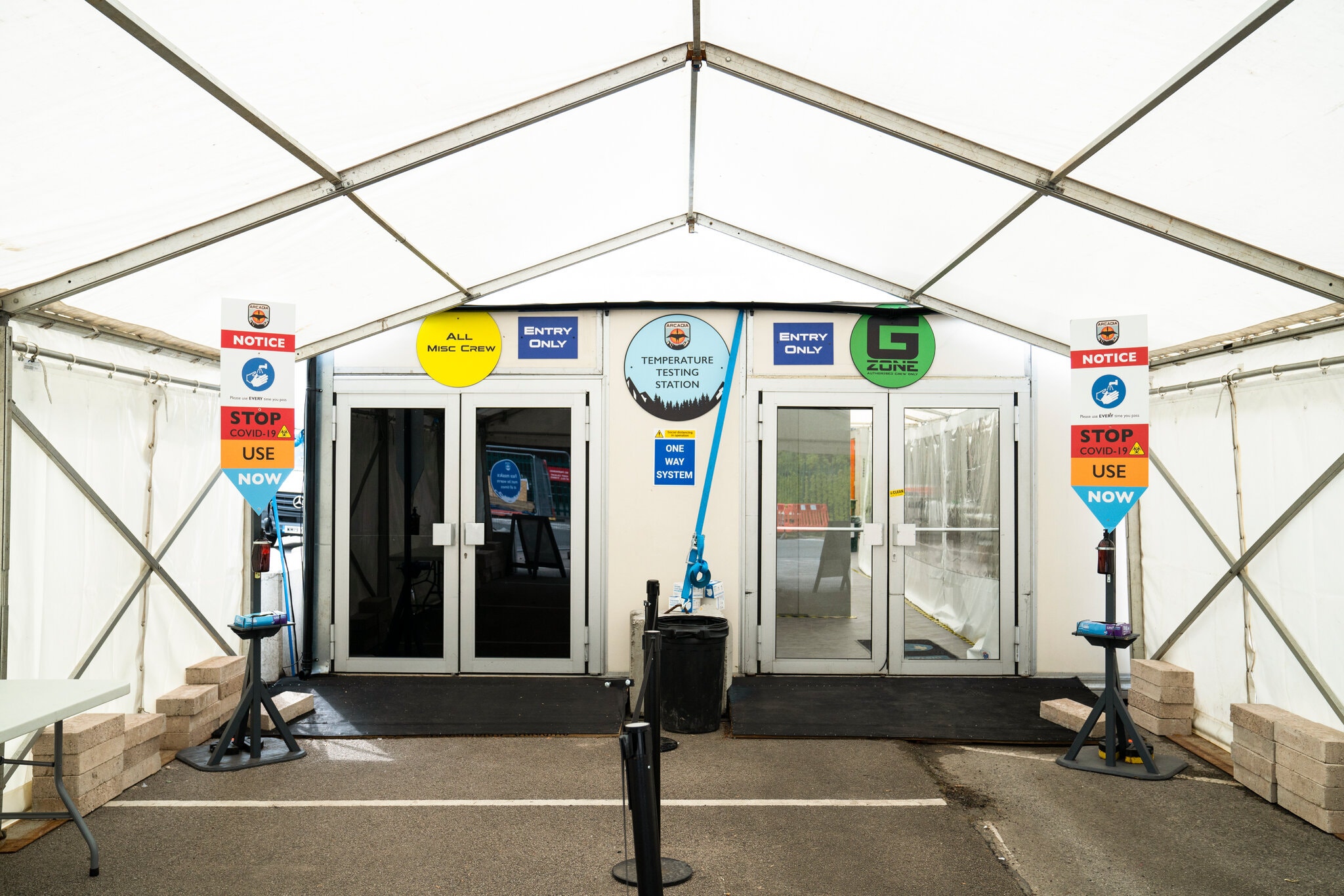 In a New York Times report going behind the scenes of Isla Nublar, the Jurassic World: Dominion production gives us an idea of what a film set will look like amid the ongoing coronavirus pandemic. With cases spiking in Los Angeles, and rising in other popular filming sites like Austin and Atlanta, it's "virtually impossible to shoot anywhere in the U.S. right now," producer Mark Gill told NYT, forcing studios to look overseas. The Avatar sequels are filming in New Zealand, Sony's Uncharted is going to Berlin, and Marvel plans to resume shooting Shang-Chi in Australia. But it's Jurassic World: Dominion that's setting the example, with its infrared temperature scanners, vacuum-sealed meals at the cafeteria, and strict testing schedules.