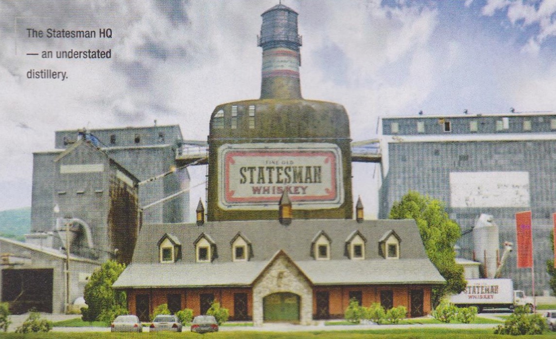 He's probably talking about the new villain Poppy, played by Julianne Moore. You can see Poppy's lair, as well as the Statesman HQ (disguised as a whiskey distillery) in the images below. There's more where that came from here, including an image of a Kingsman cab going underwater like a submarine.