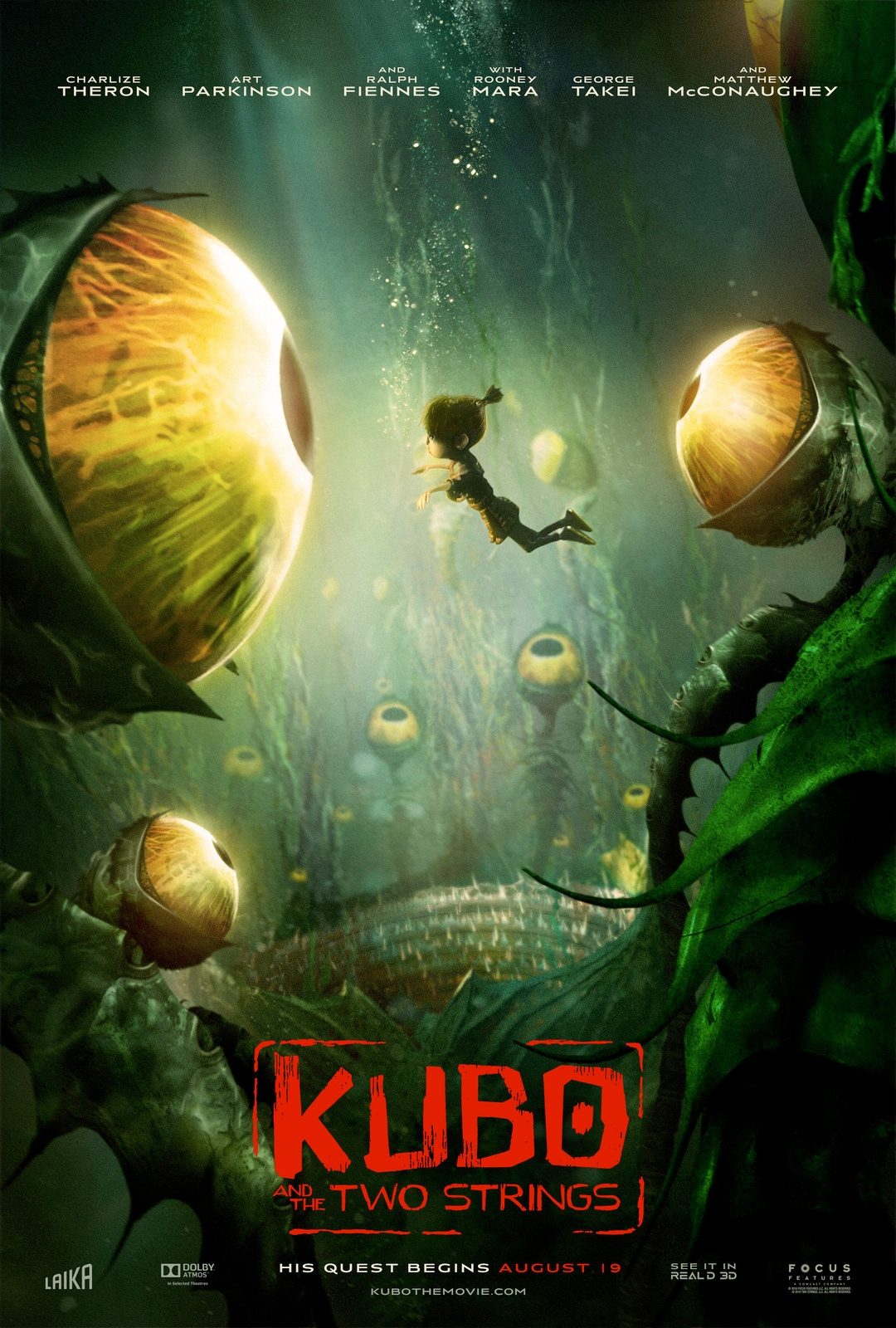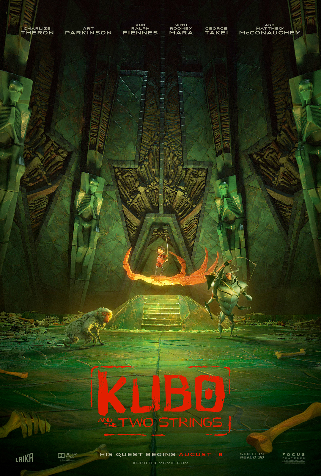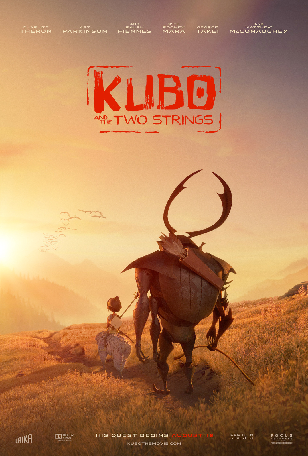 Clever, kindhearted Kubo (voiced by Art Parkinson of "Game of Thrones") ekes out a humble living, telling stories to the people of his seaside town including Hosato (George Takei), Akihiro (Cary-Hiroyuki Tagawa), and Kameyo (Brenda Vaccaro). But his relatively quiet existence is shattered when he accidentally summons a spirit from his past which storms down from the heavens to enforce an age-old vendetta. Now on the run, Kubo joins forces with Monkey (Charlize Theron) and Beetle (Matthew McConaughey), and sets out on a thrilling quest to save his family and solve the mystery of his fallen father, the greatest samurai warrior the world has ever known. With the help of his shamisen – a magical musical instrument – Kubo must battle gods and monsters, including the vengeful Moon King (Ralph Fiennes) and the evil twin Sisters (Rooney Mara), to unlock the secret of his legacy, reunite his family, and fulfill his heroic destiny.