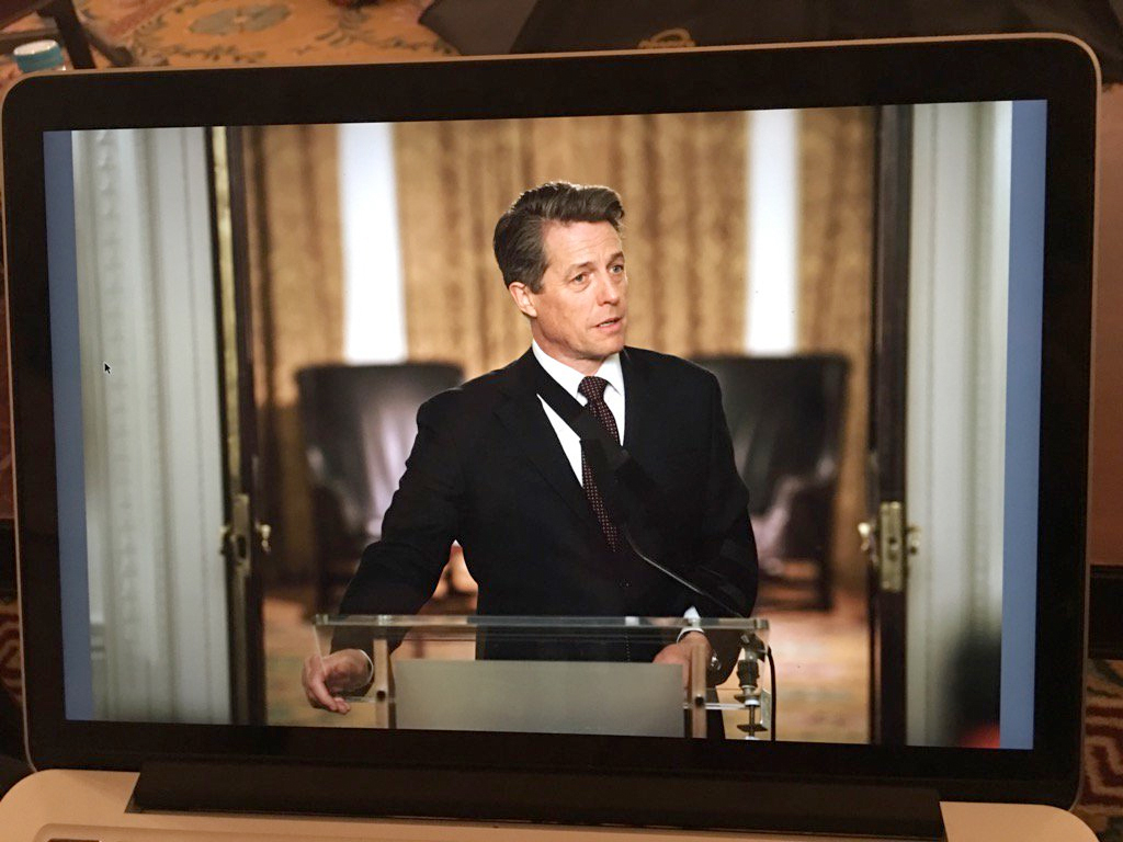 Here are some shots of Grant, returning as the unnamed Prime Minister: