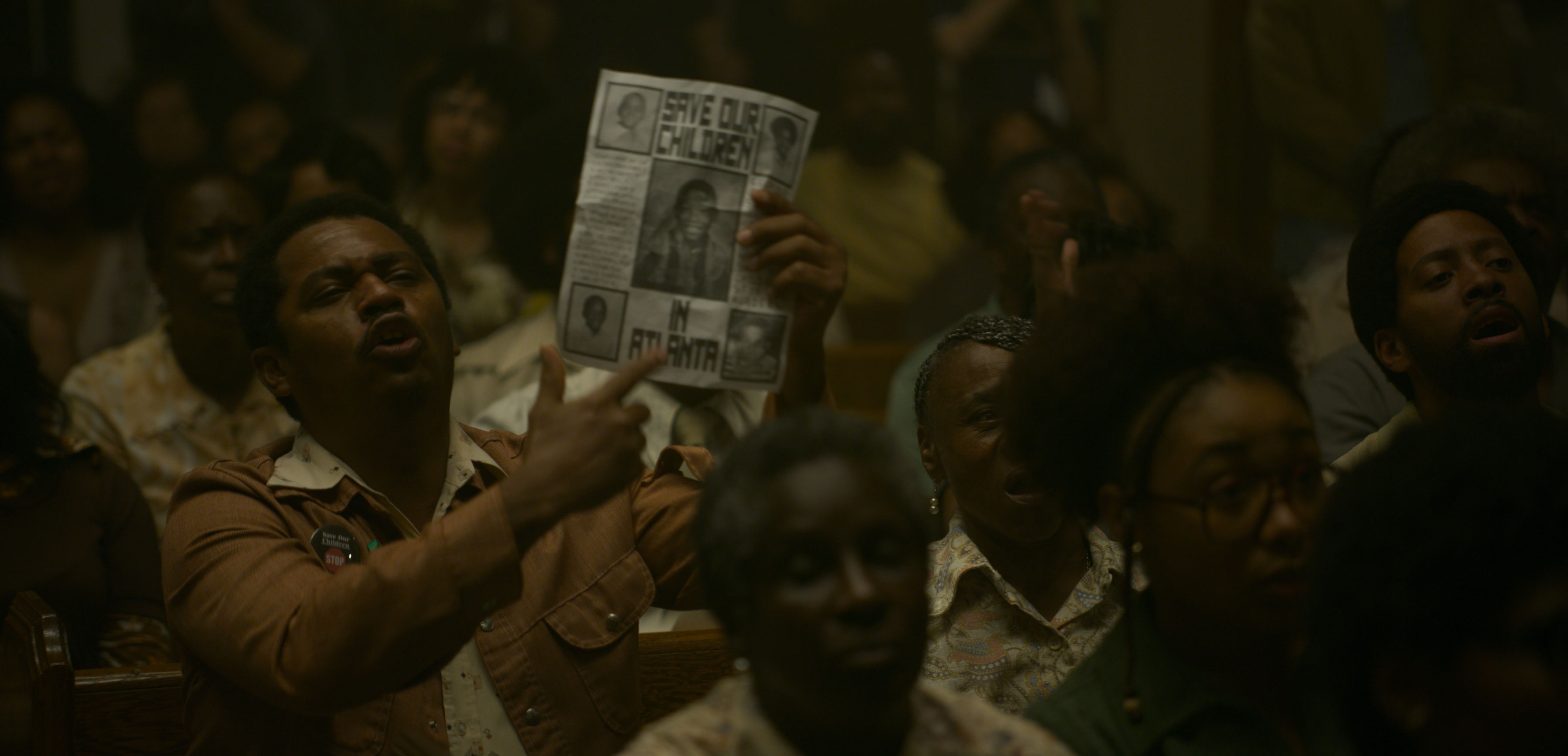 Ford with another character in front of a board loaded with pics of kids who are, based on the cut-off word there, MISSING. Season 2 allegedly deals with the Atlanta Child Murders, and that could be what this scene is referencing.