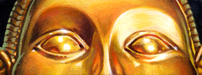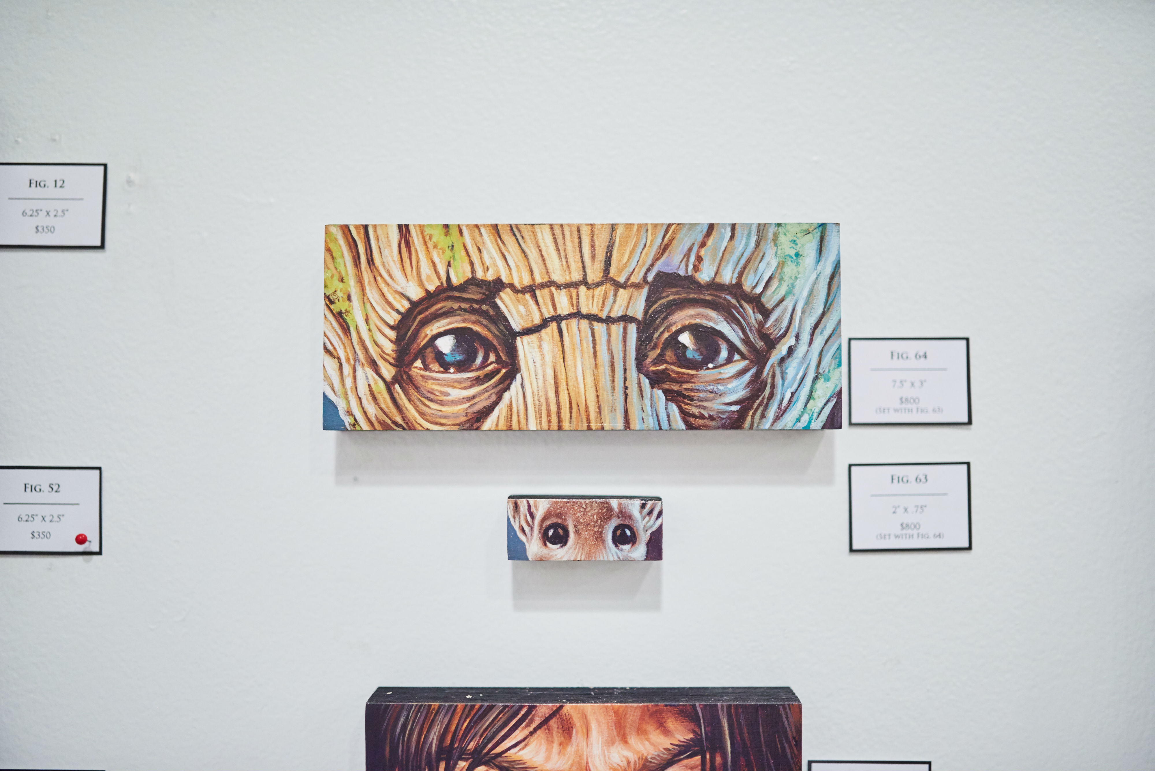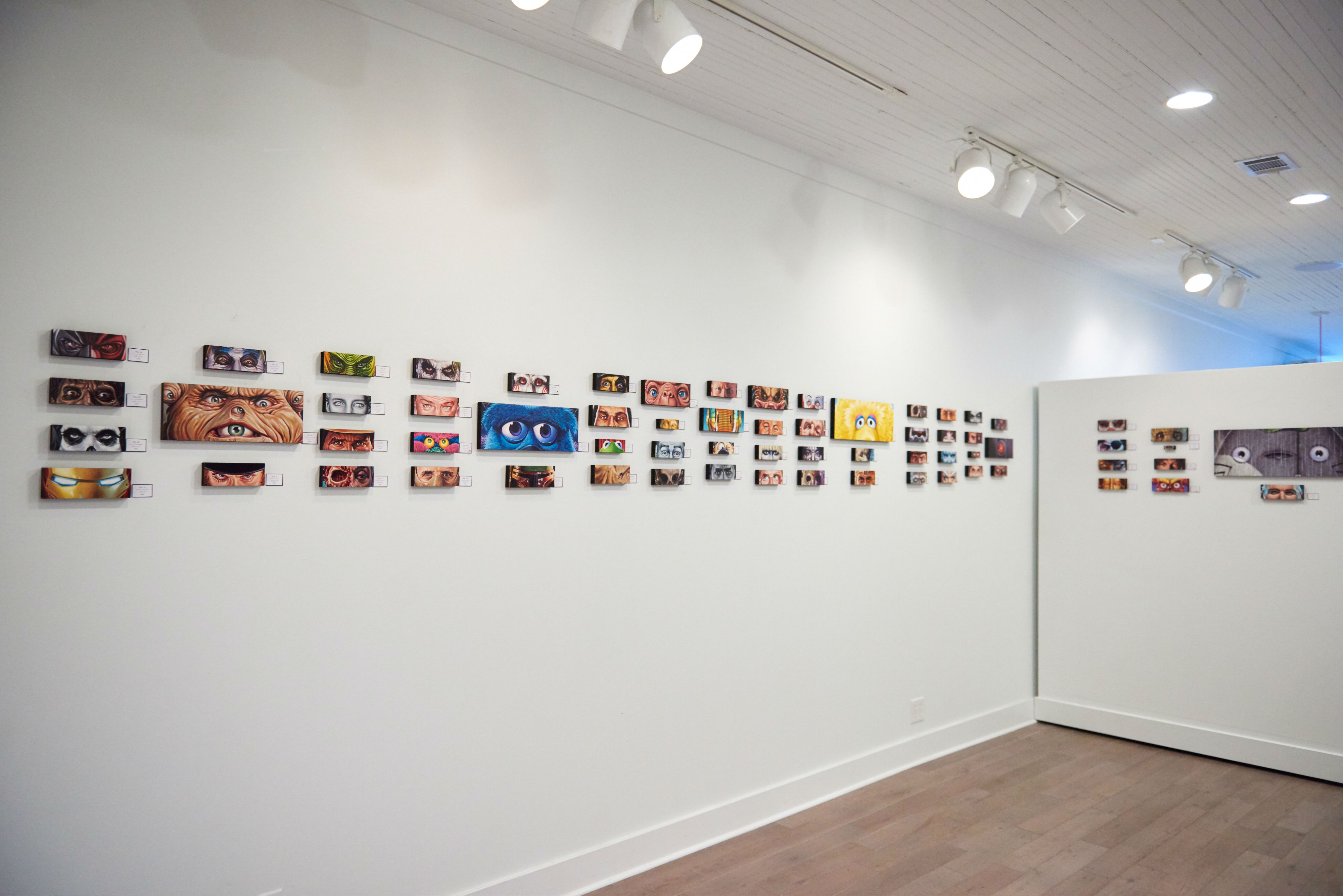 Discussing the genesis of the show's concept Edmiston said, "I had the idea for the show when I was working on my last solo exhibition for Mondo Gallery. I was driving around town with my wife bouncing concepts off of her. I checked my rear view and had the idea. The shape of the mirror made me think of just using a tight cropping of eyesfor the basis of a show. I also kind of wanted to see what it would feel like to be in agallery surrounded by eyes staring at you. It should be quite an experience to stand in the center of the gallery and slowly rotate 360 degrees, creating a feeling of being watched by your heroes."
