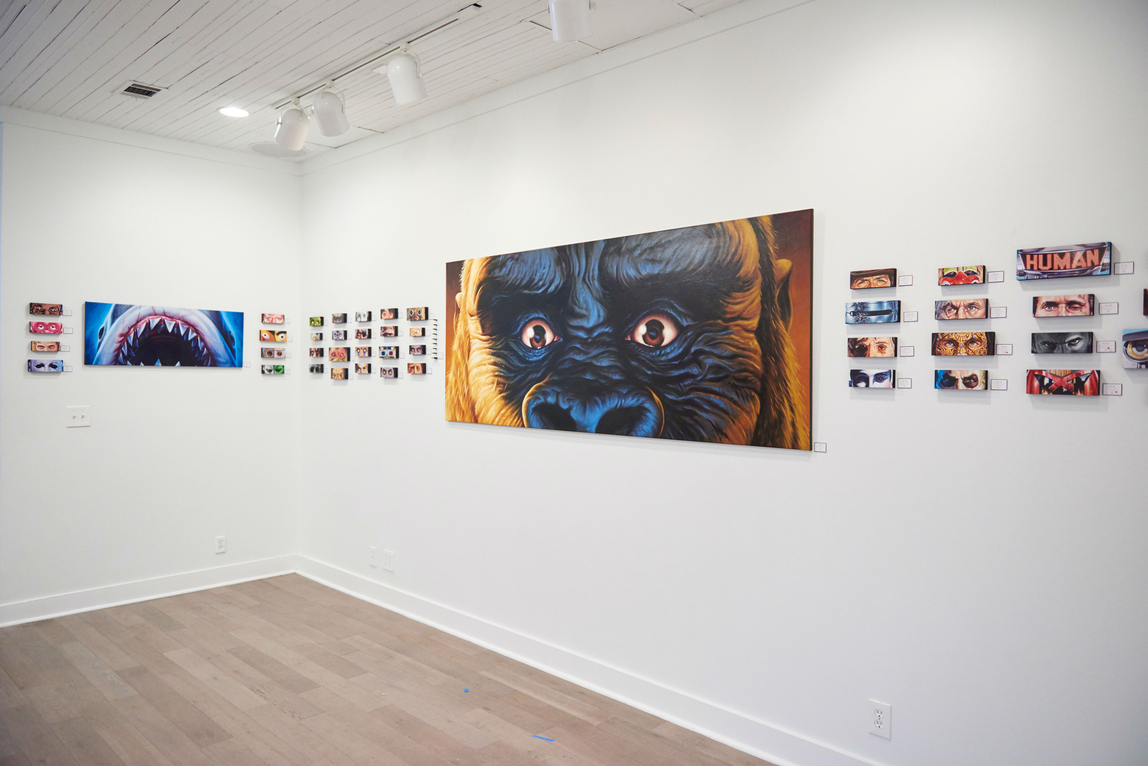 And, just to make things interesting, he did each painting in actual size. So King Kong is several feet long while characters from The Lego Movie are less than an inch. Below, find out more about the show, see images from inside and just a fraction of the amazing art in Eyes Without a Face at the Mondo Gallery.