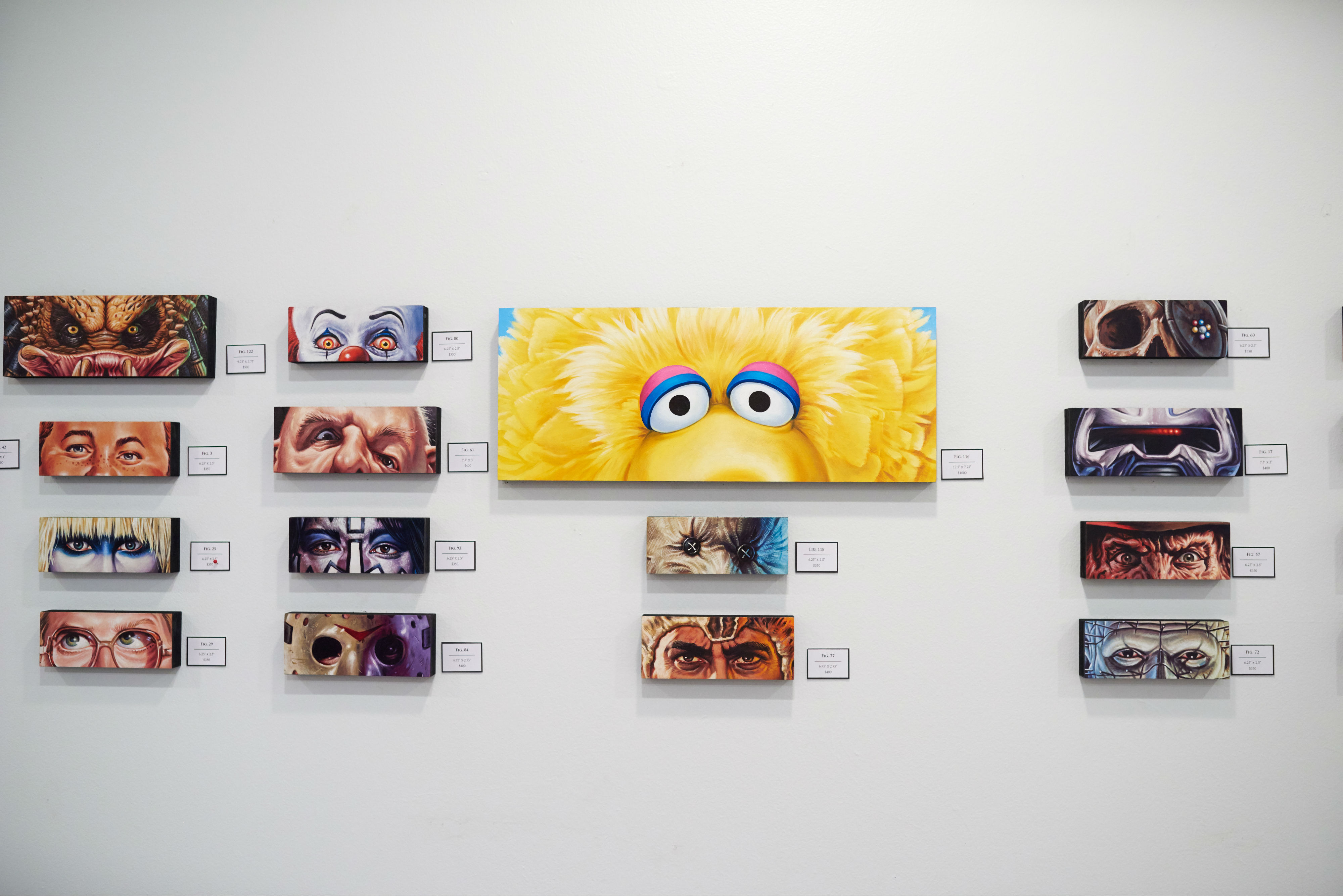 "Eyes Without A Face" will feature approximately 150 portraits of eyes culled together from film, music, comics, video games, toys and more. Each piece will be presented ata 1:1 ratio – from tiny plastic toy people, humanoid actors, to giant beasts and more. The concept allowed Edmiston to curate a wide spectrum of characters for the gallery in a way that made thematic sense. Part of the fun will be trying to figure out all 150 characters at the show.