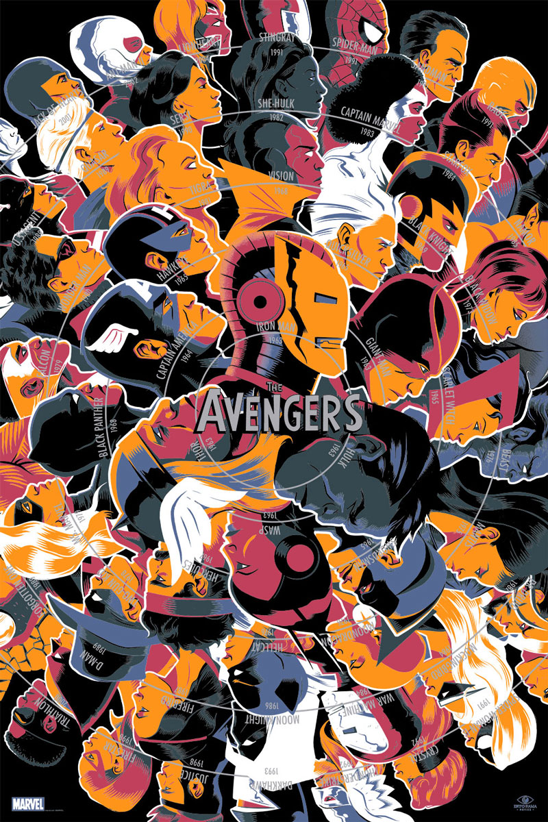Info•Rama was founded in 2014 by artists Kevin Tong and Tom Whalen, who set out to create beautiful infographics that were full of meticulously researched information while also doubling as gorgeous pieces of art. Since both Tong and Whalen regularly collaborate with Mondo, the purveyors of the internet's favorite pop culture posters and merchandise, a team-up was inevitable. Now, Info•Rama is the subject of the latest Mondo Gallery show in Austin, Texas, with Tong, Whalen, and Matt Taylor contributing pieces that break down some of your favorite movies, television shows, and comic book characters while also looking nothing short of gorgeous.