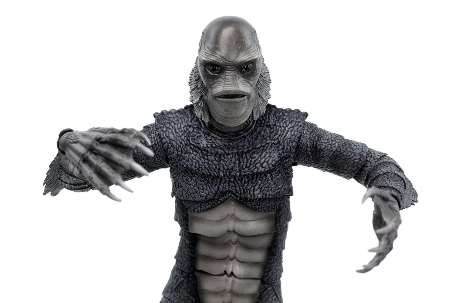 Below is the first-ever 1/6 Scale Figure of the Creature From the Black Lagoon. Two years in the making, this figure has 16 points of articulation, stands at 12" tall, comes with switch-out swim hands and feet, as well as two switch-out heads. There's also a handy dandy fossil hand accessory. It's available in both the classic Creature colors as well as the Mondo exclusive Silver Screen Variant, but for a limited time offer, you can buy the CREATURE 1/6 Scale Figure and receive 20% off (1) CREATURE 1/6 Scale Figure – Silver Screen Variant if purchased together.