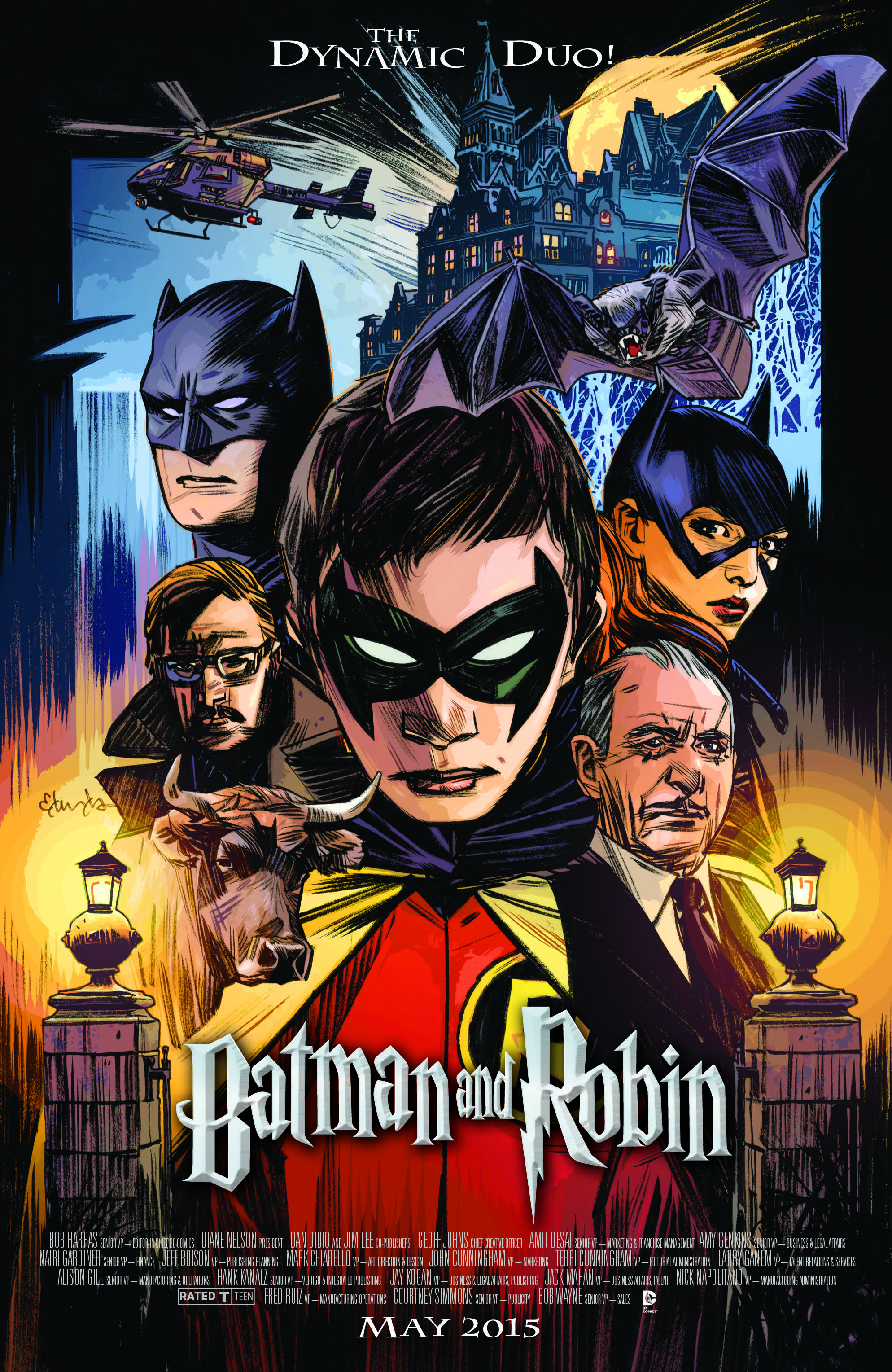 In 2015, DC Comics is making every month a theme month for variant covers. The March 2015 titles, which are being announced today, will feature variant covers based on Warner Bros. movie posters, from Harry Potter to The Fugitive and Super Fly. Below, we debut four of the new movie-themed variant DC Comics covers, along with the full list of upcoming covers, and their respective inspirations and artists.